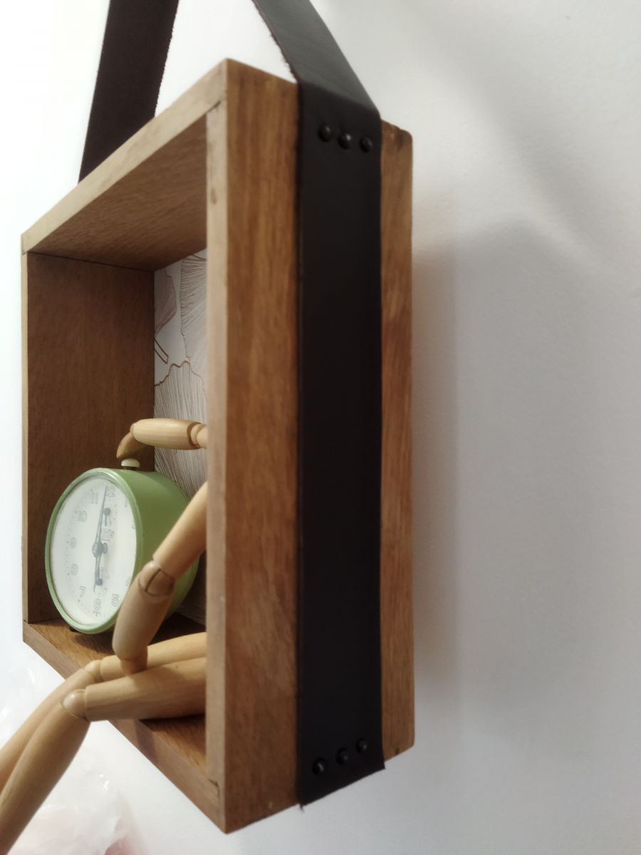 Pour la suspendre , j ai cloué une sangle en cuir.