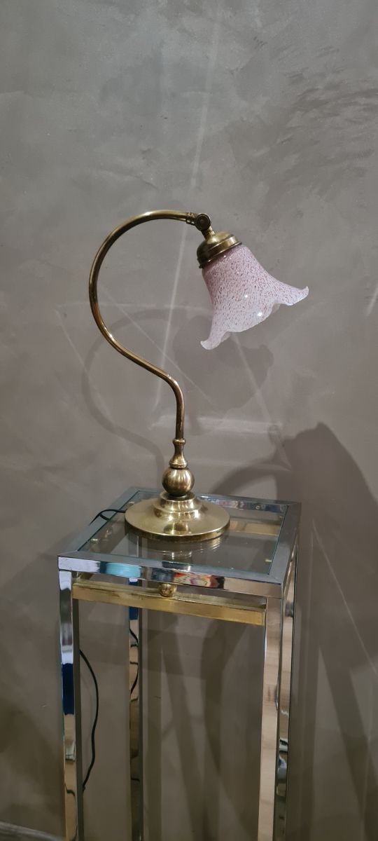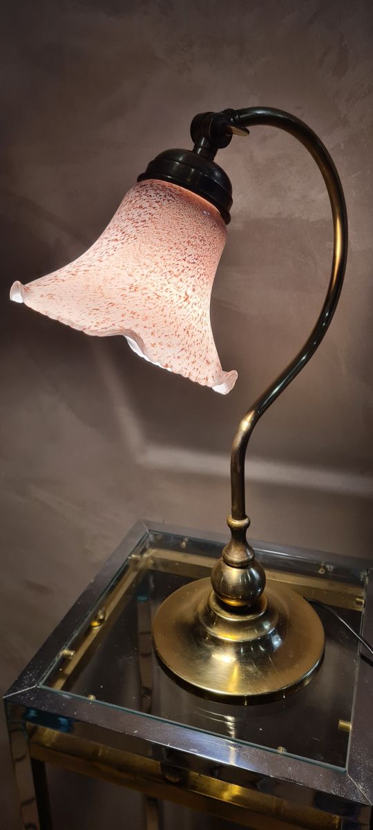 lampe laiton style art deco avec tres belle tulipe opaline moucheté 46x31