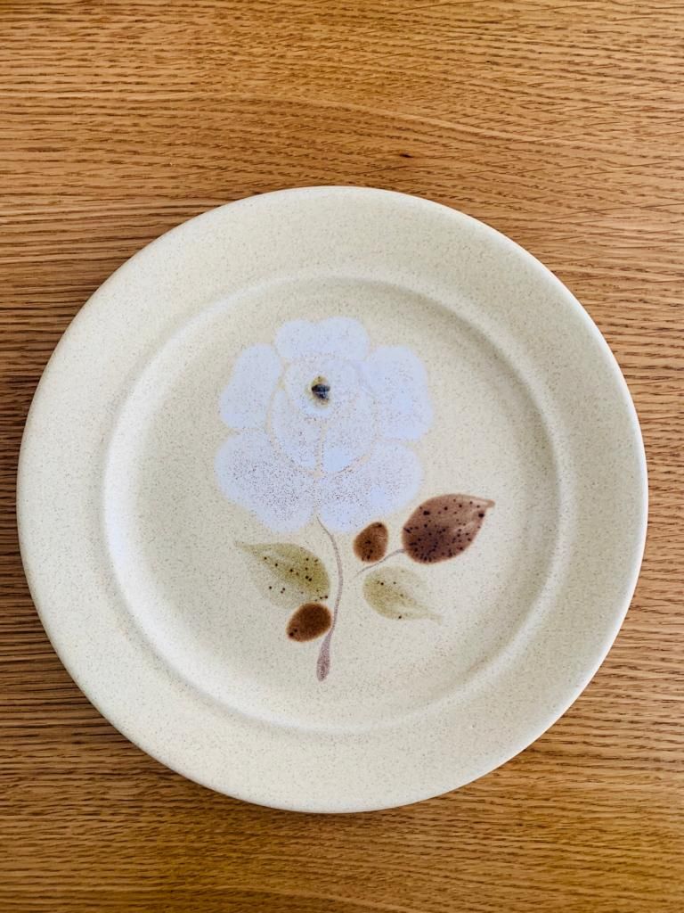 Assiette en Grès avec jolie fleur peinte à la main. Origine : Faïence St Amand.
