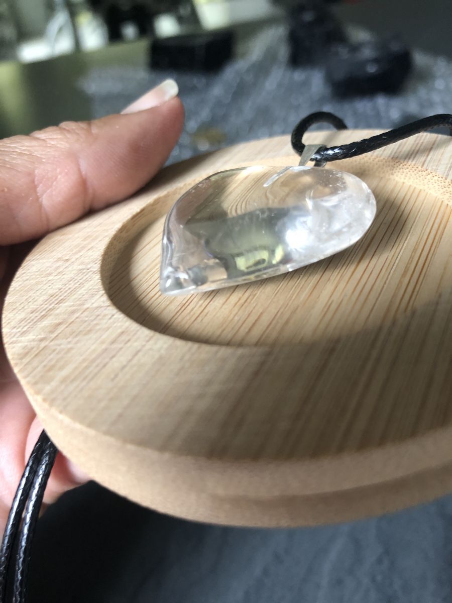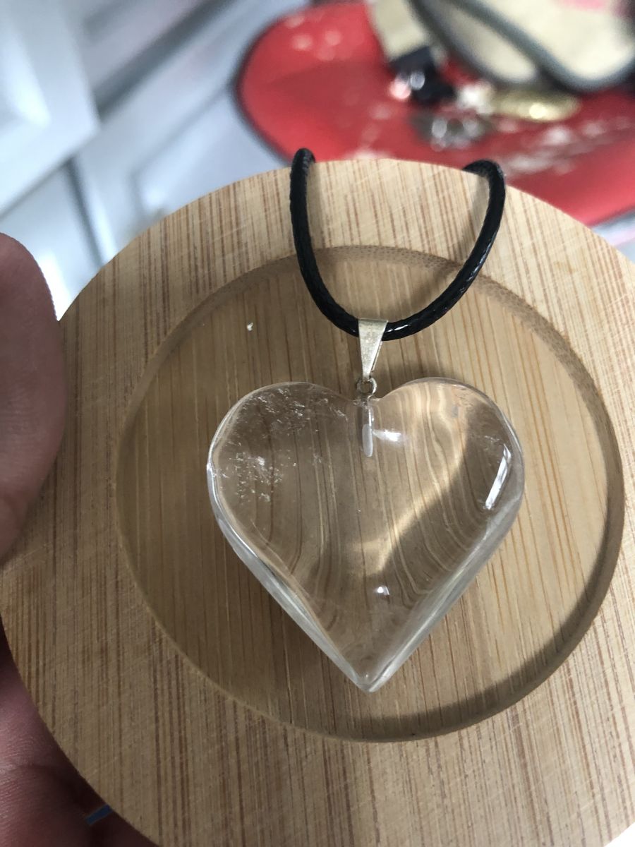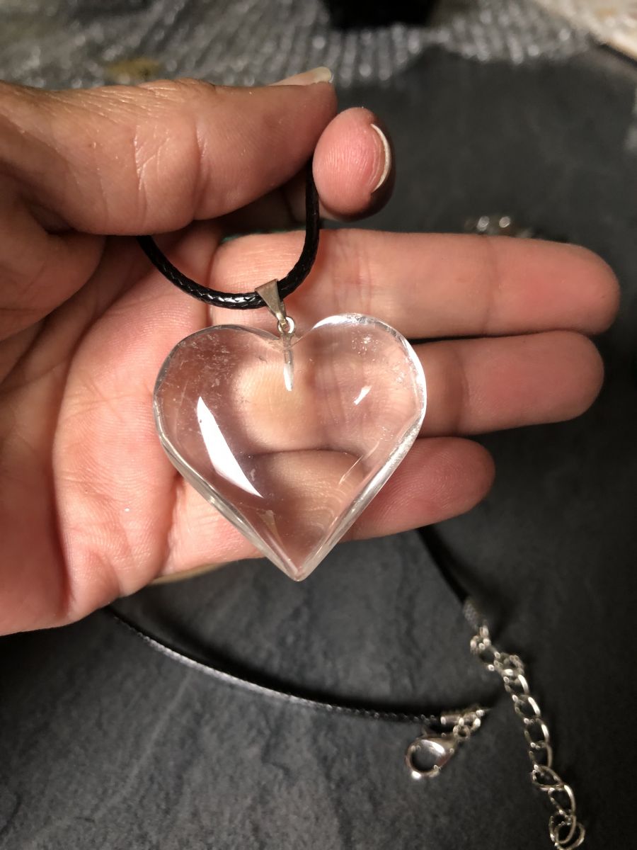Collier avec pendentif forme coeur en véritable pierre naturelle Cristal de roche