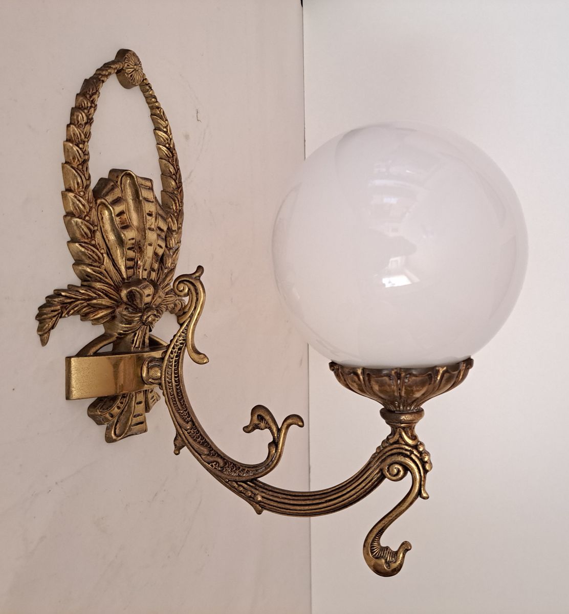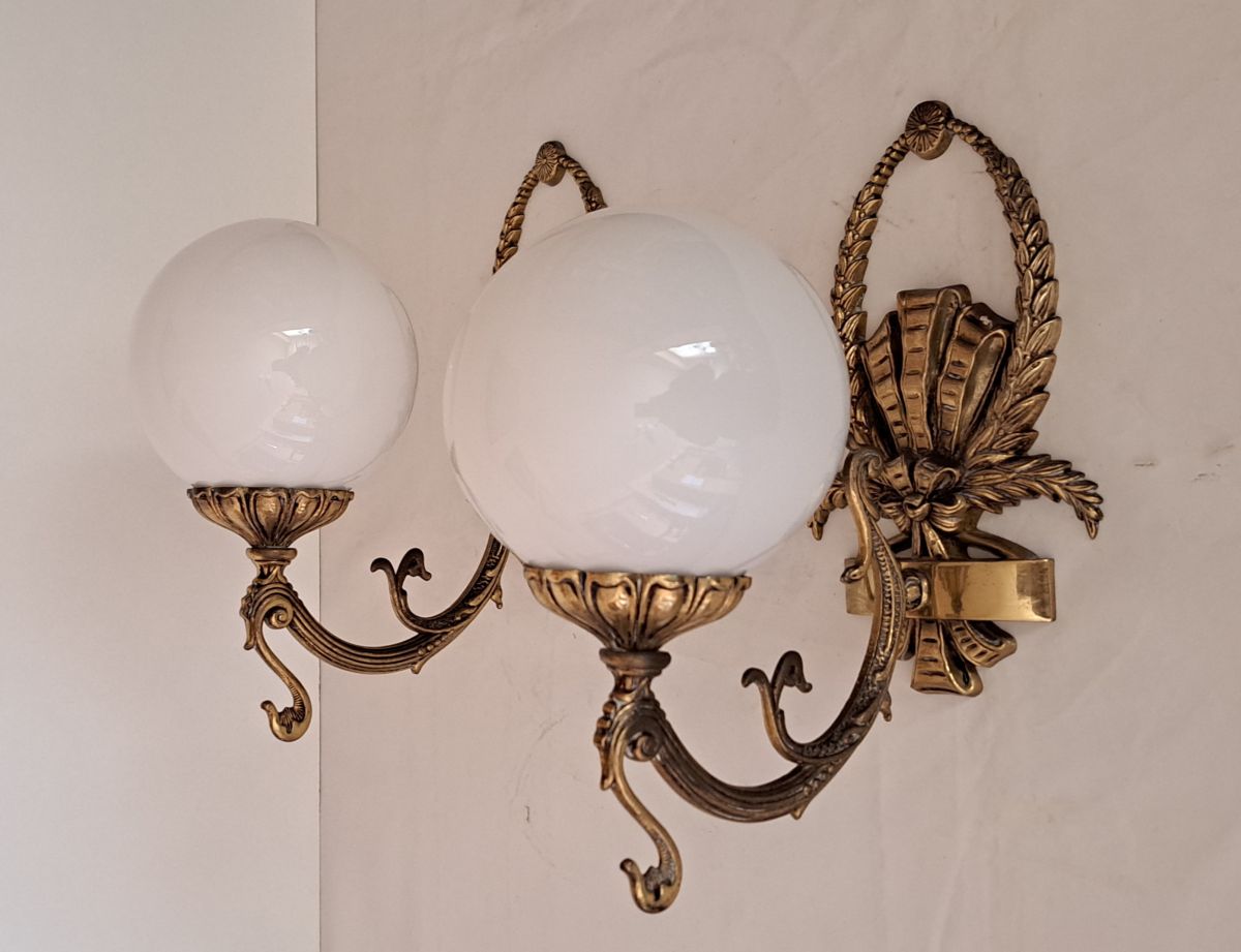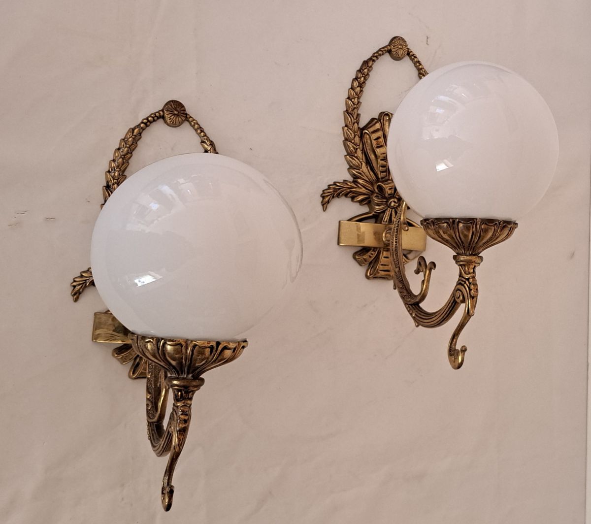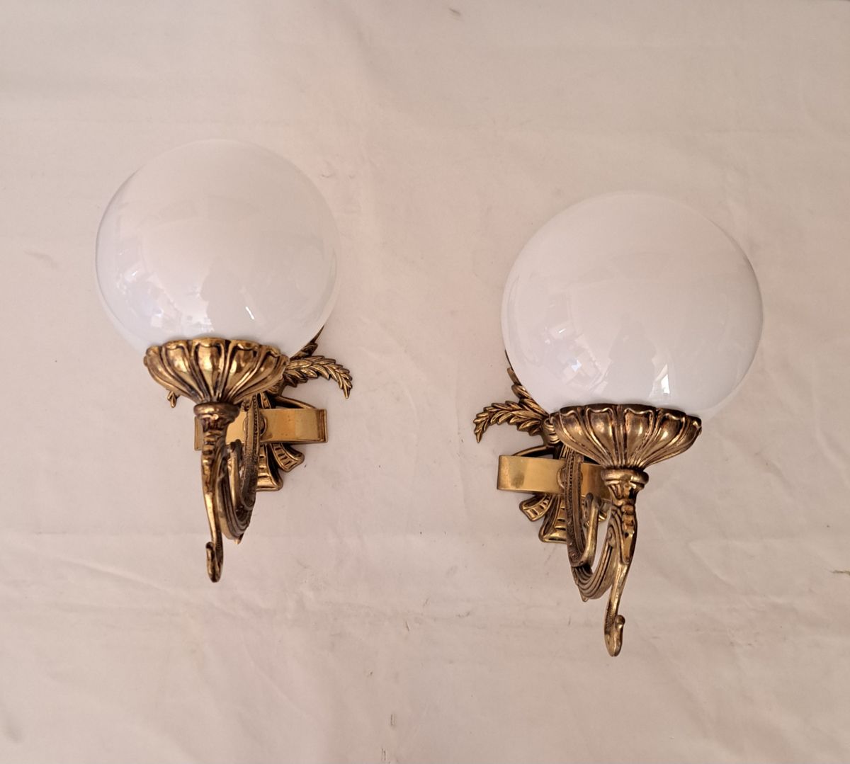 Marque : Appliques en bronze et globe opaline blanche. Système électrique d'origine.