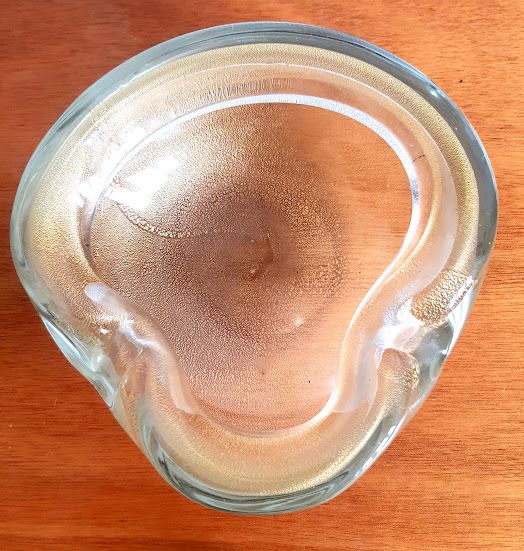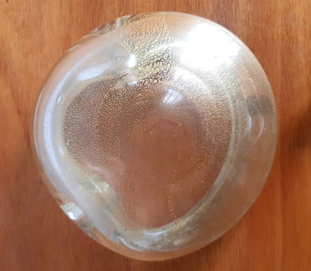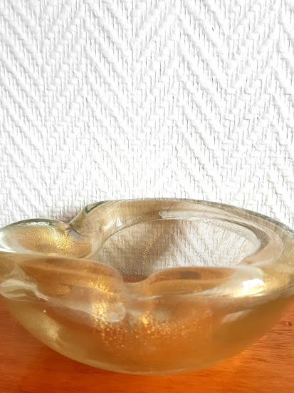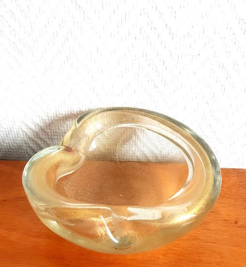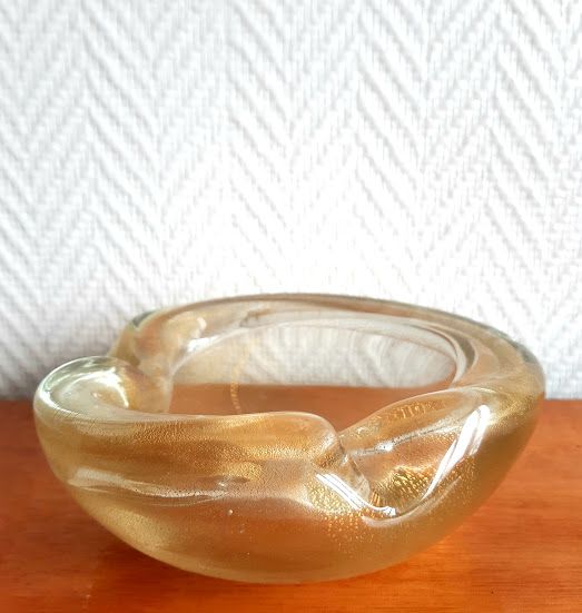 Vide poche en verre de Murano avec incrustations de pailletons dorés.
