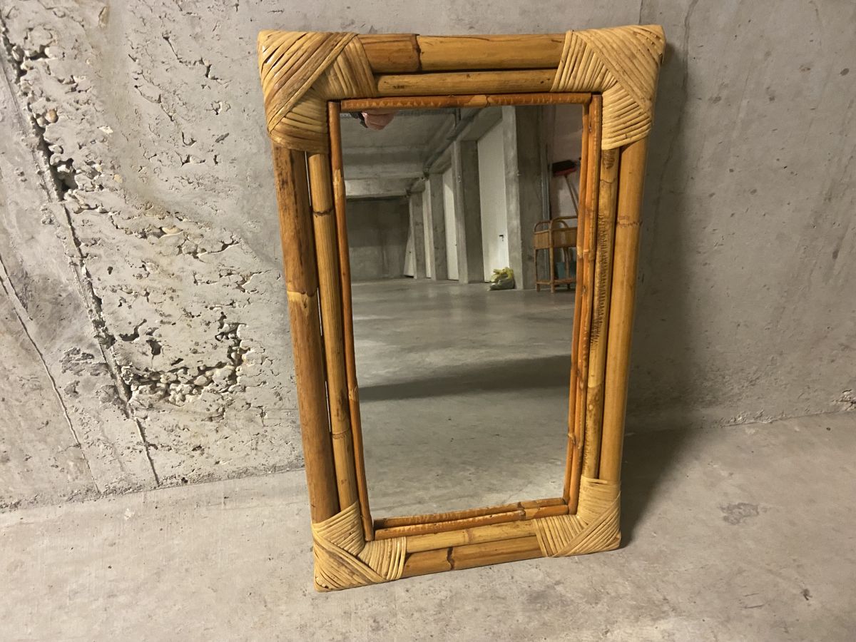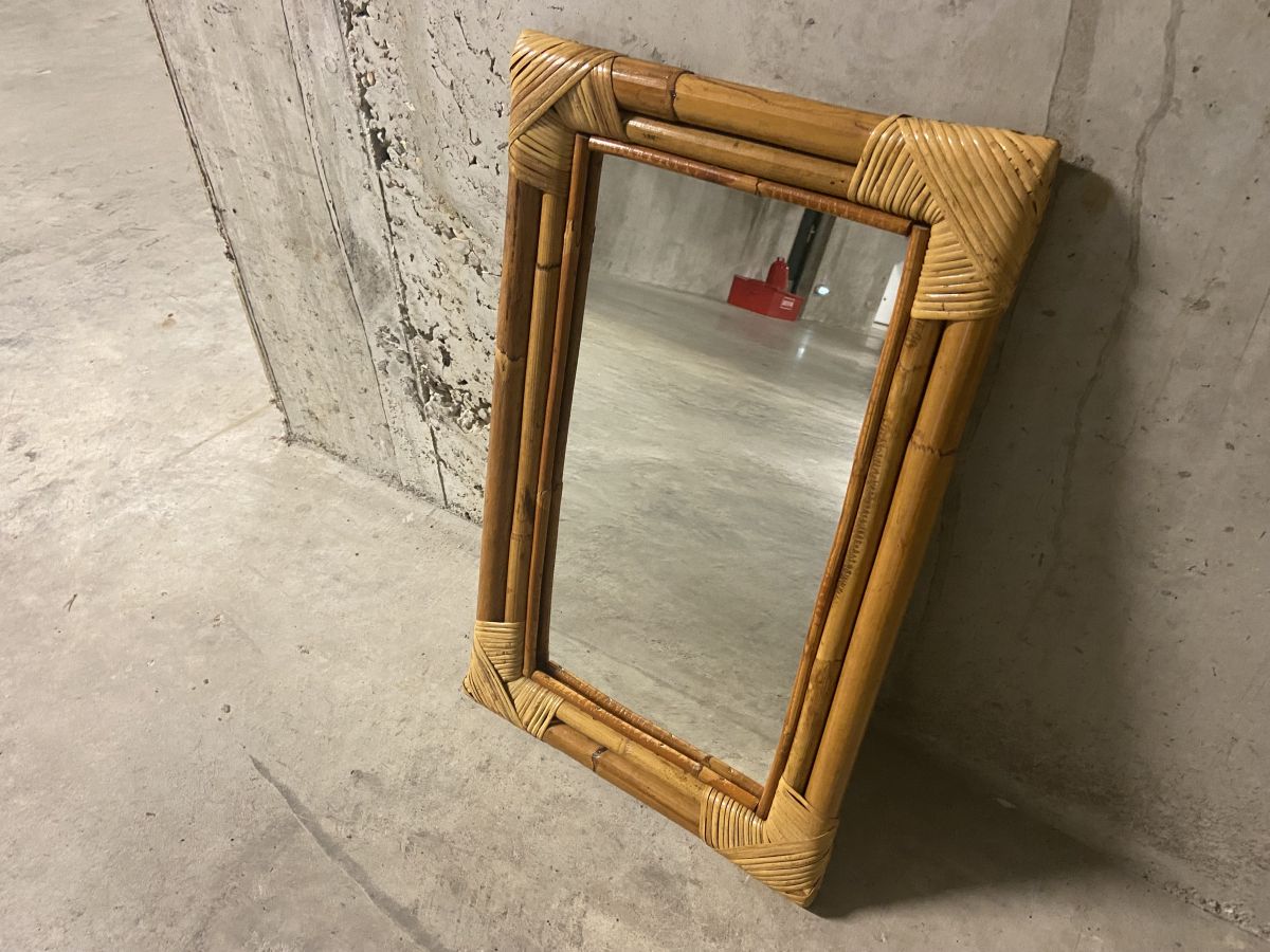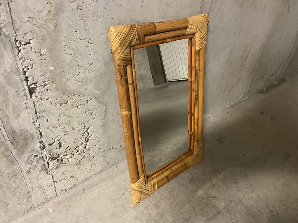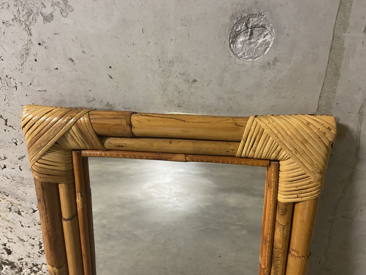 Miroir en bambou et rotin années 60