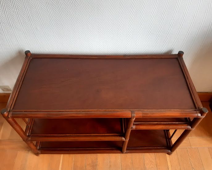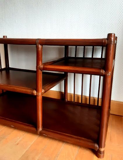Meuble composée deux quatre compartiments étagères, avec barreaux de bambous sur les côtés et en partie en arrière.