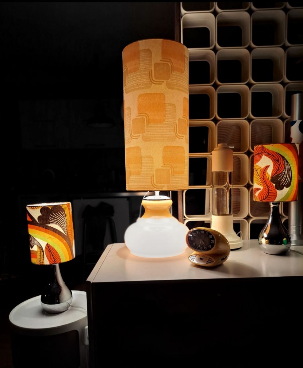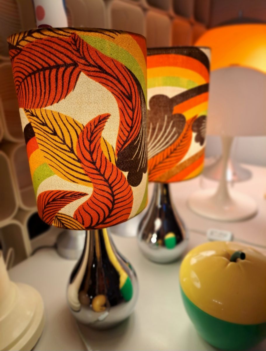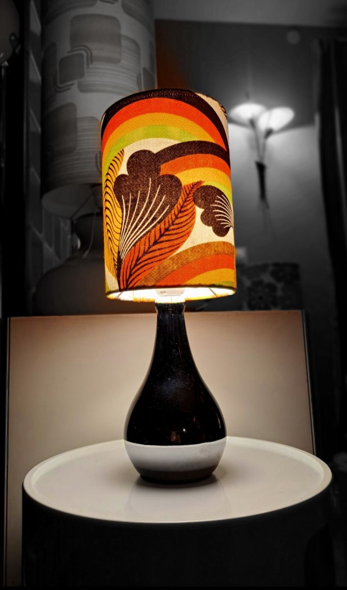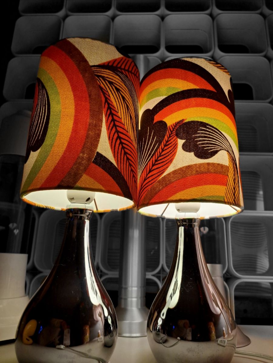 Abat-jours issue d'une création à partir de tissu de l'époque 1970