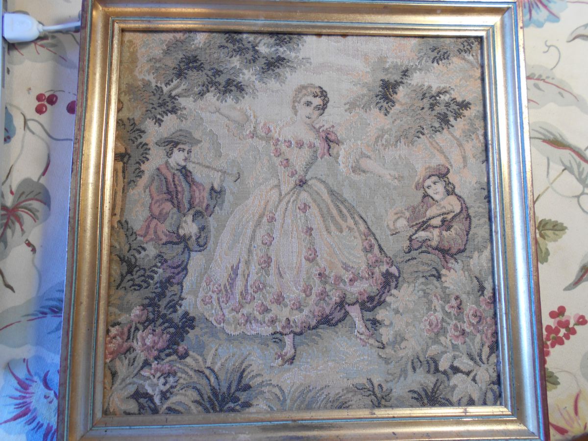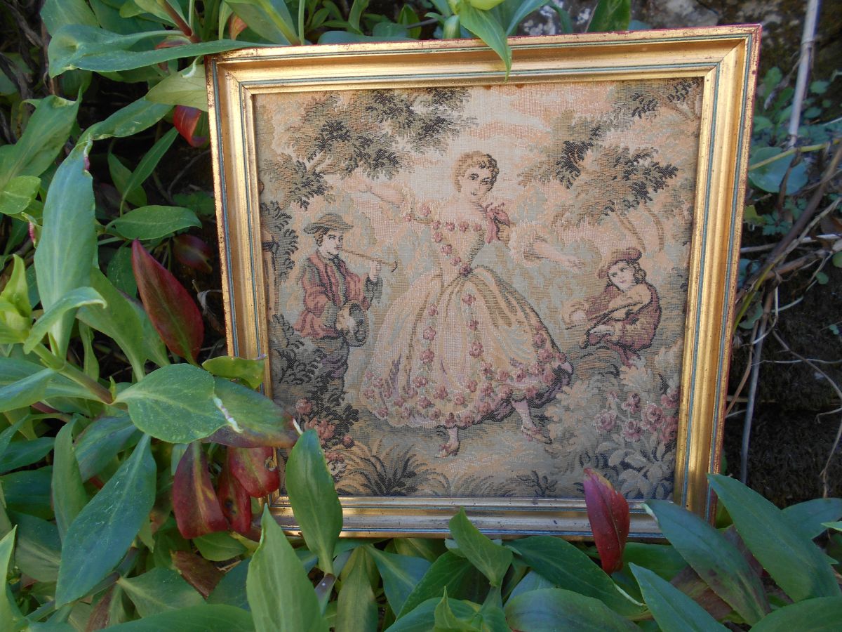 TAPISSERIE CADRE ANCIEN VINTAGE DAME DANSANTE 26X26 CM