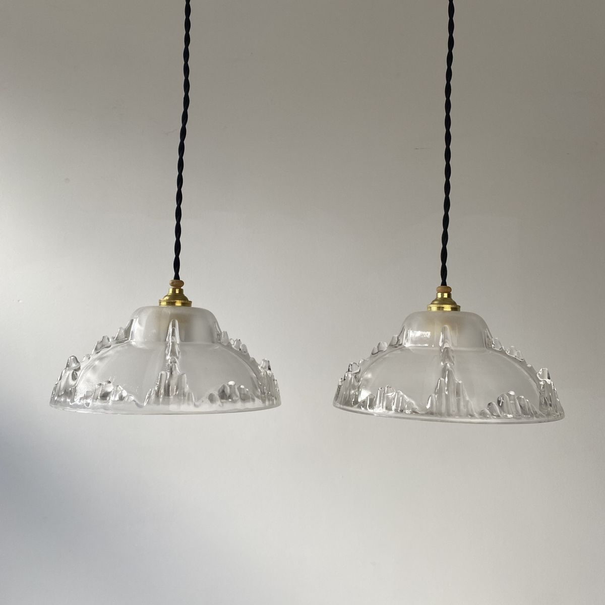2 belles suspensions des années 1930 signées « EZAN ». En très bel état.