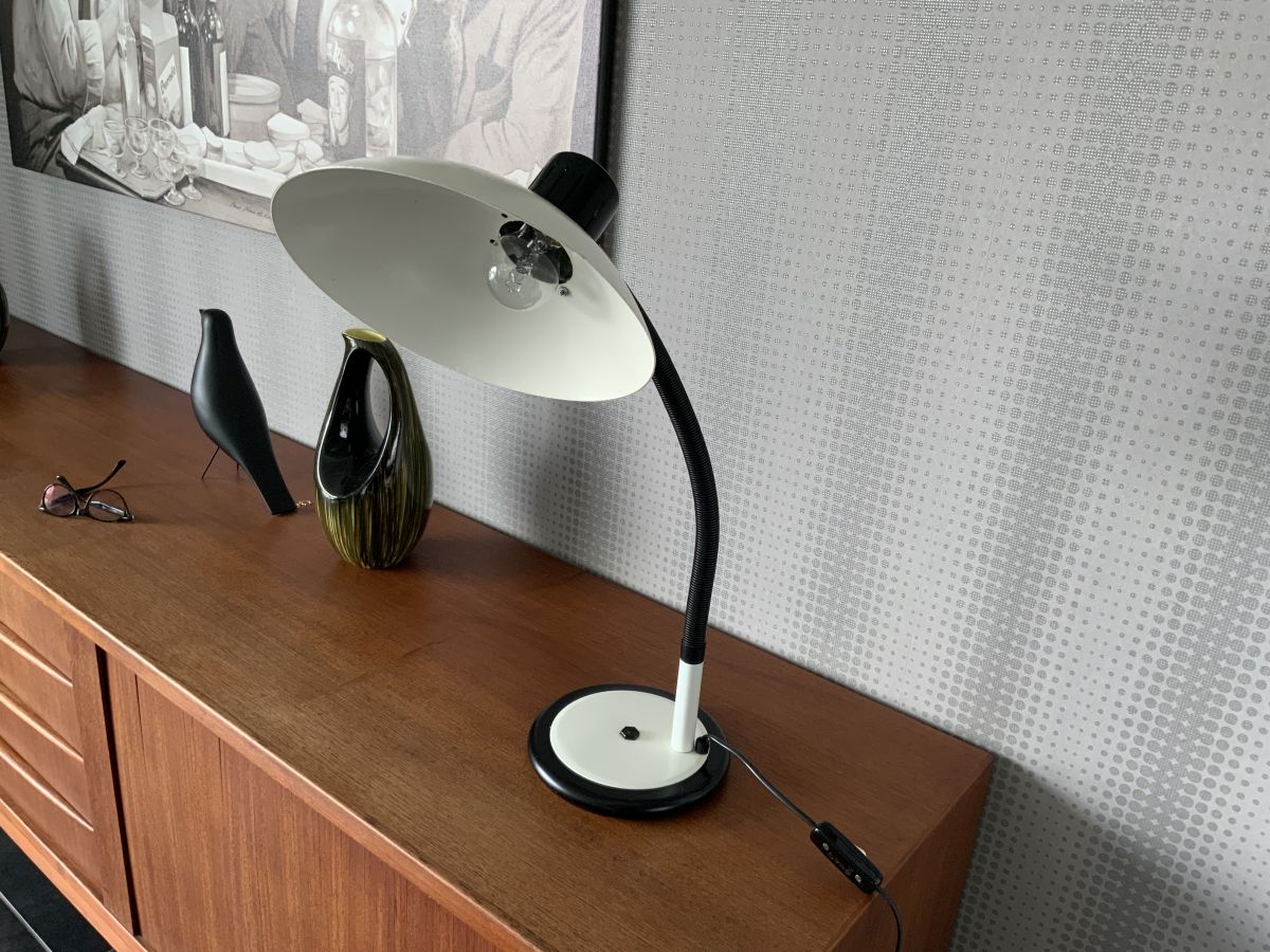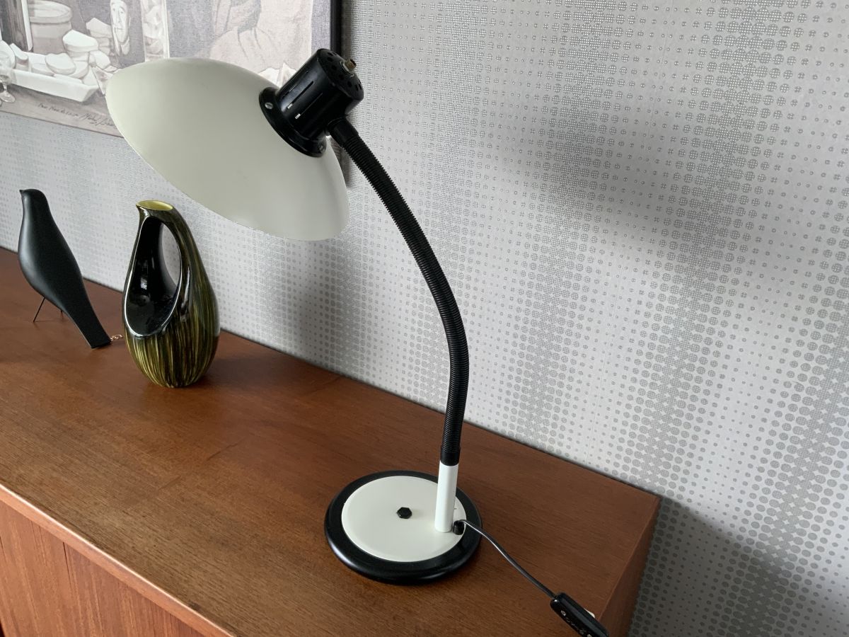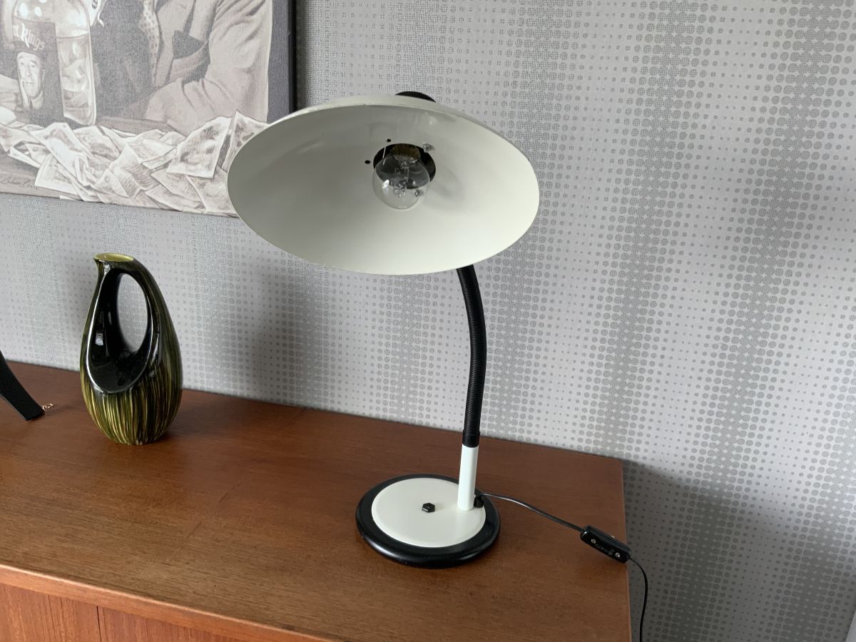 Lampe vintage à poser aluminor. Fera son plus bel effet sur votre bureau, votre console à l’entrée, votre bout de canapé au salon ou votre table de chevet. Lampe vintage articulée à poser où vous voulez ! Minimes traces d’usage dues au temps.