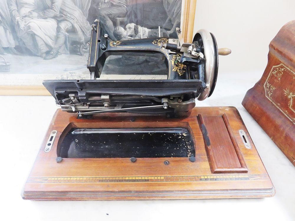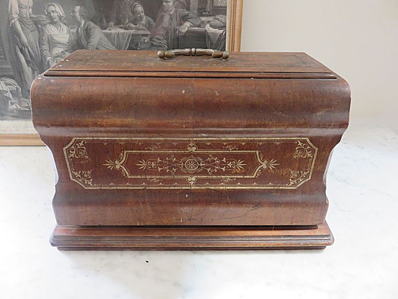 Elégante MACHINE A COUDRE ancienne en fonte avec son très joli couvercle d'origine.