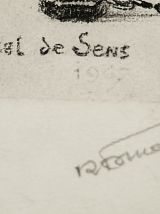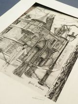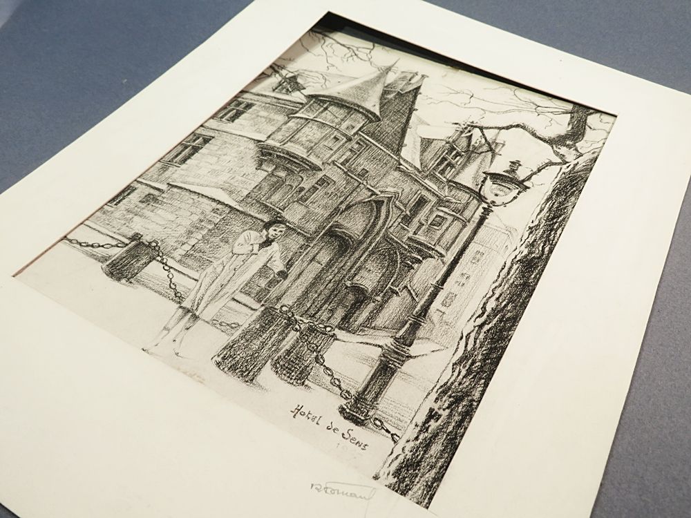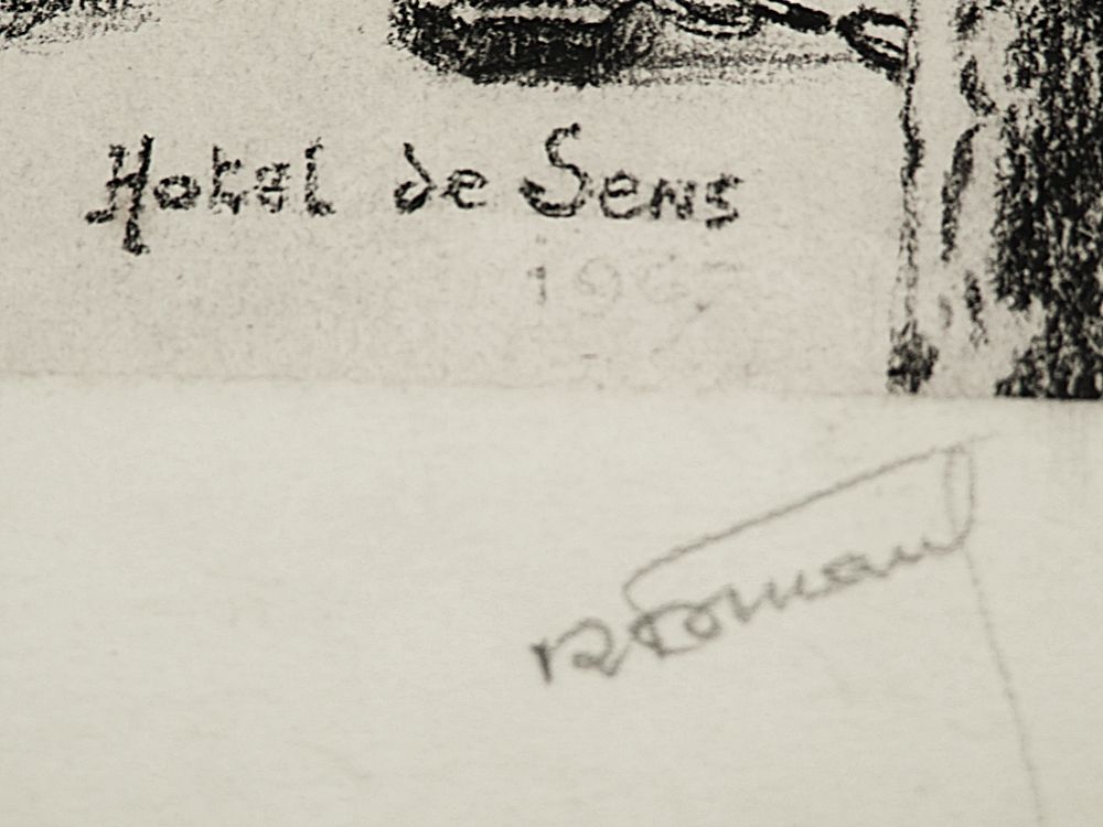 Authentique DESSIN AU FUSAIN HOTEL DE SENS daté 1967 et signé. Protection sous verre avec pinces.