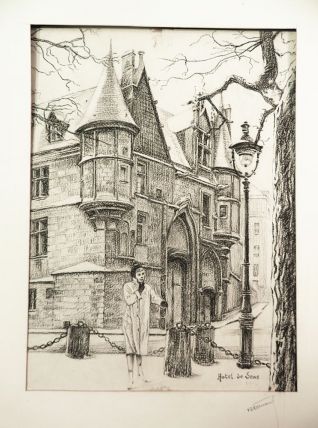 DESSIN AU FUSAIN HOTEL DE SENS 1967