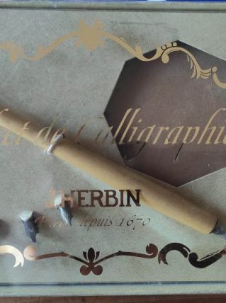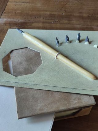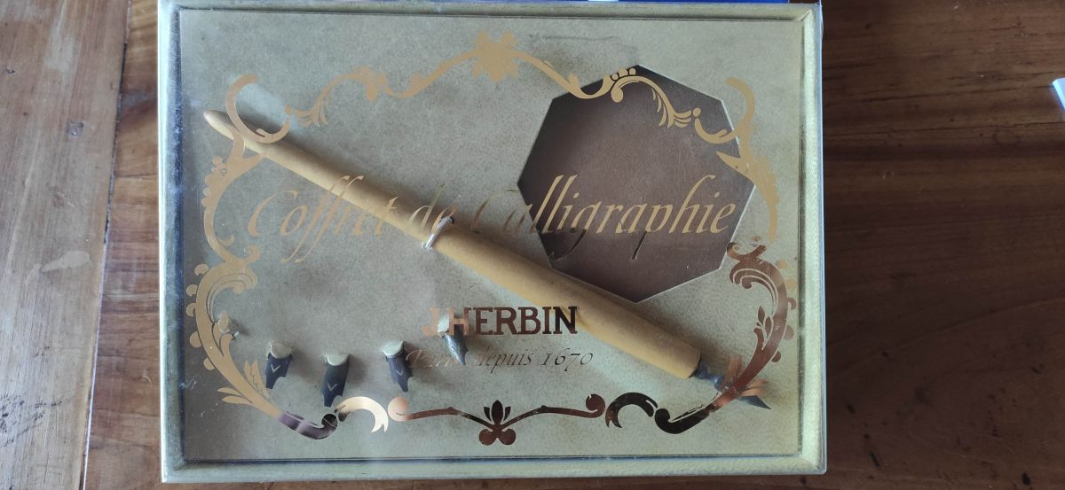 coffret Calligraphie avec porte plume en bois +5 plumes +coffret de jolies feuilles