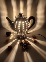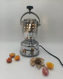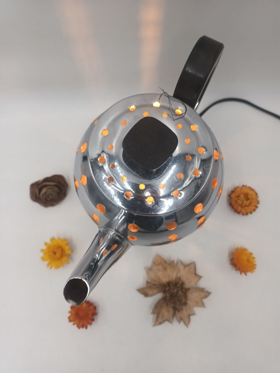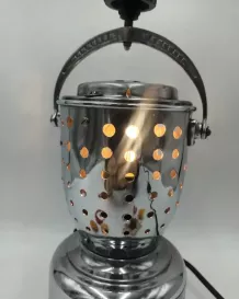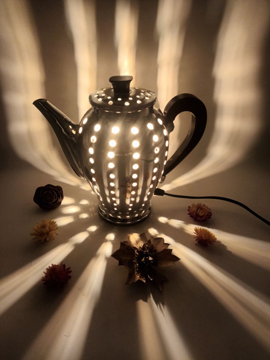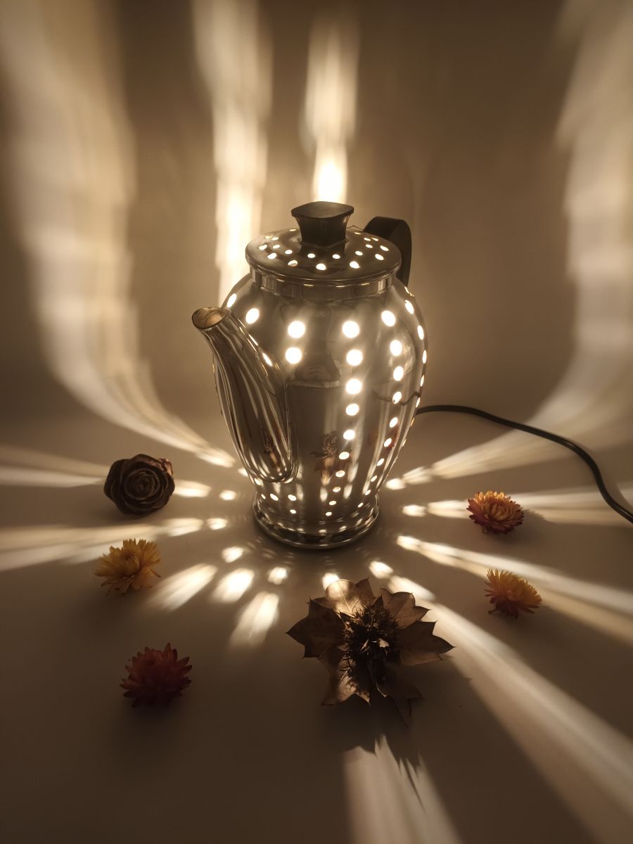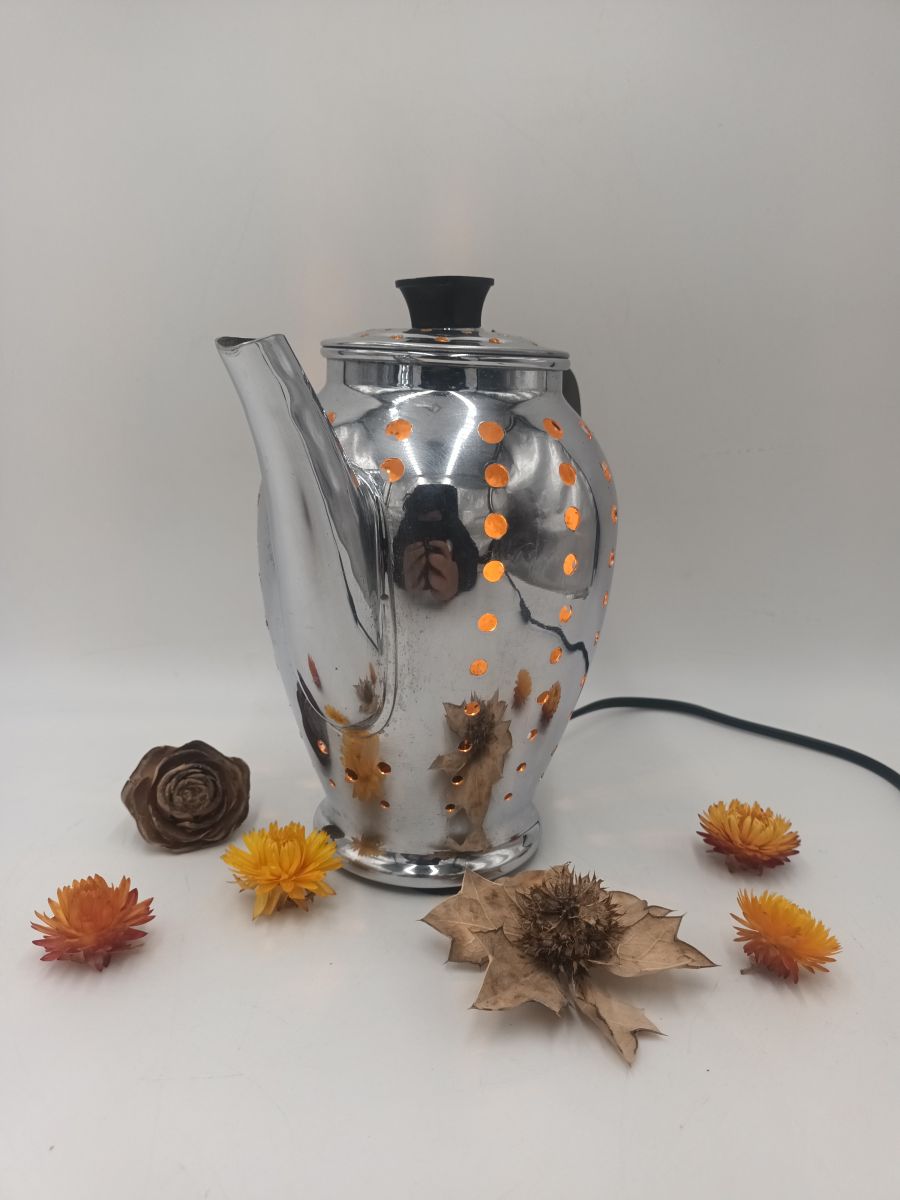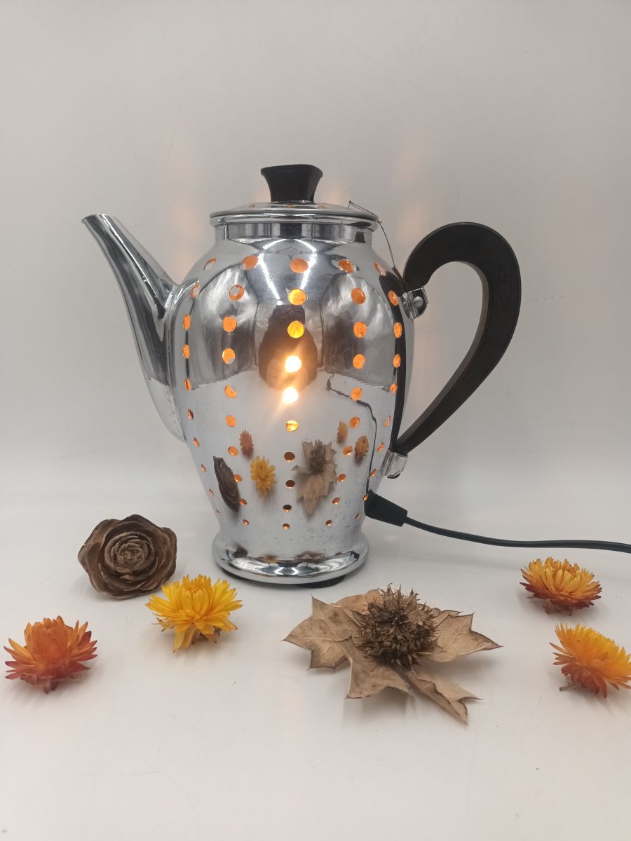 Ancienne cafetière transformée en lampe.