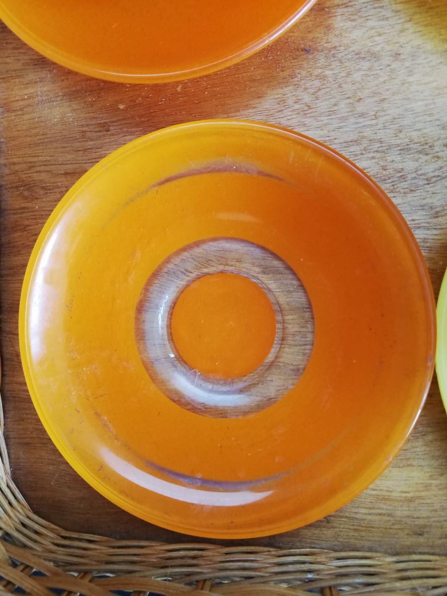 Bon état général malgré ses 60 ans, à noter un manque de couleur sur une doucoupe. En verre trempé solide.