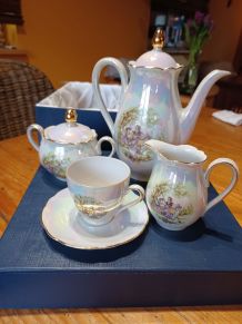 Dimensions :tasse 9.5 cm, hauteur 5cm,soucoupe diamètre 13.5 cm, hauteur 2cm,poids d'un ensemble environ 295 Grs.