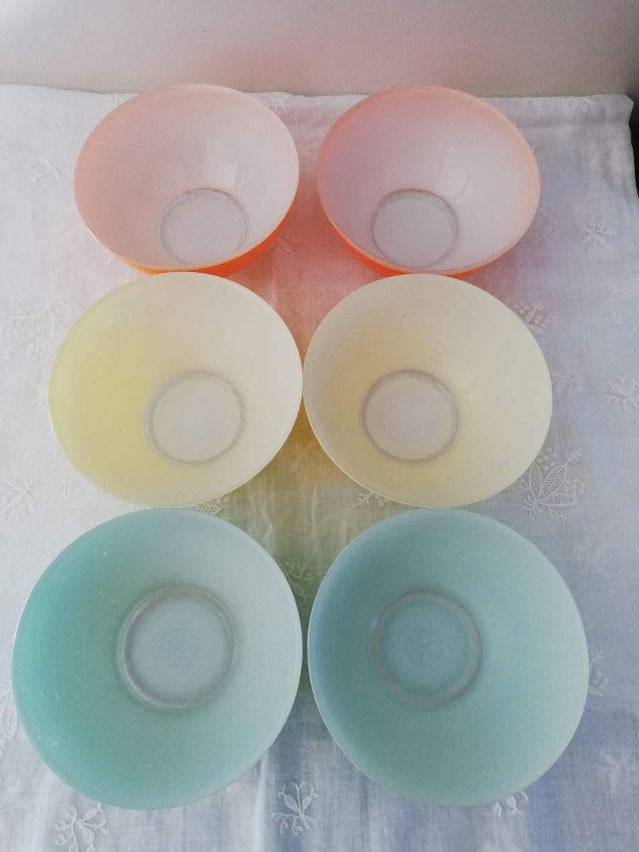 Suite 6 bols Duralex colorés vintage