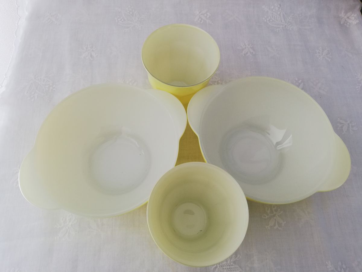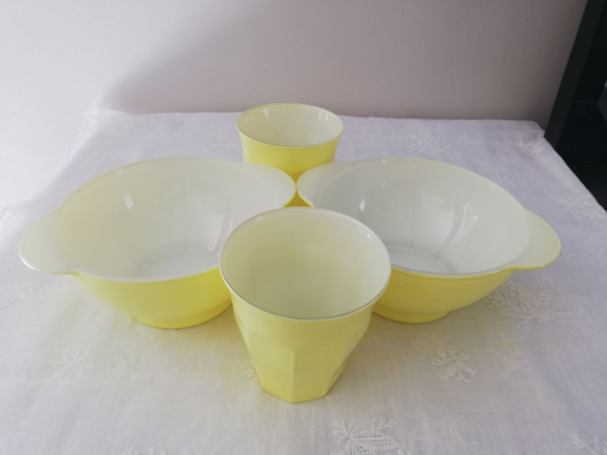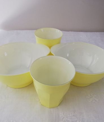 Set de petit déjeûner printanier avec ces 2 bols et verres d'une éclatante couleur jaune !