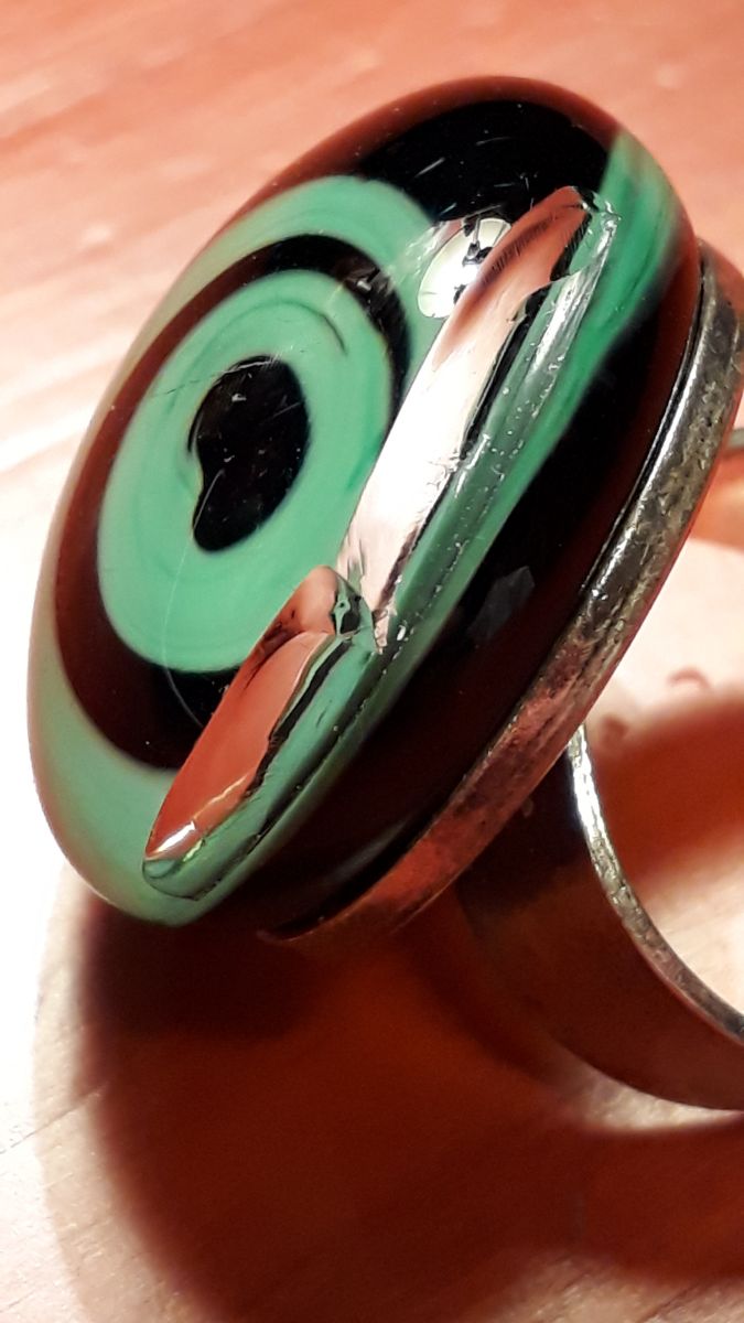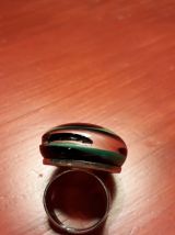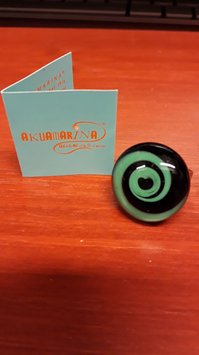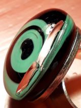 Cette bague originale en véritable Murano est montée sur un anneau argenté. Elle est dans sa boîte d'origine avec son certificat de garantie. La bague qui, à l'origine est de taille modulable, a été soudée à l'étain. Le verre est abimé en dessous mais n'est pas coupant et ne se voit pas lorsque la bague est portée.(cf les 2 dernières photos) C'est une taille 54 (17mm de diamètre).
