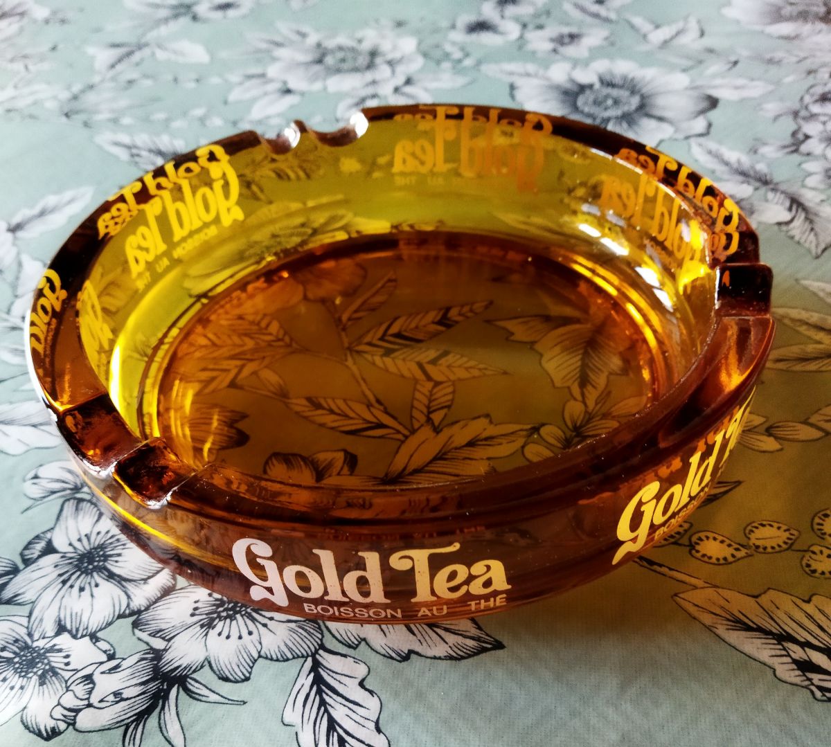Cendrier publicitaire de comptoir de bistrot, Gold tea.