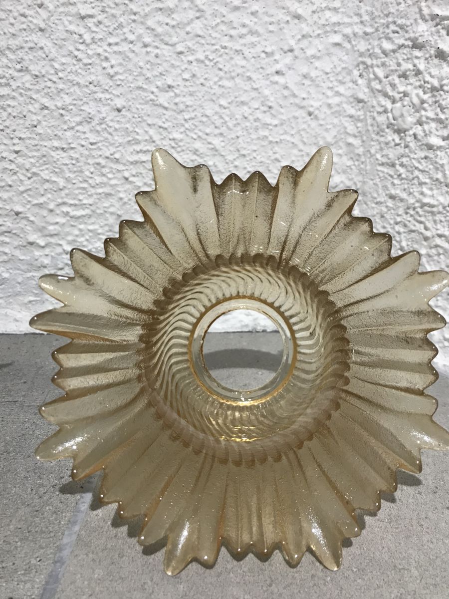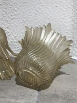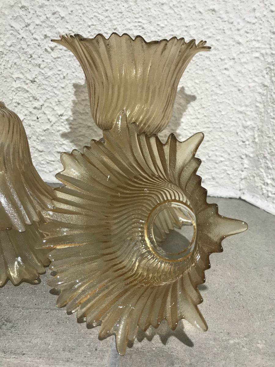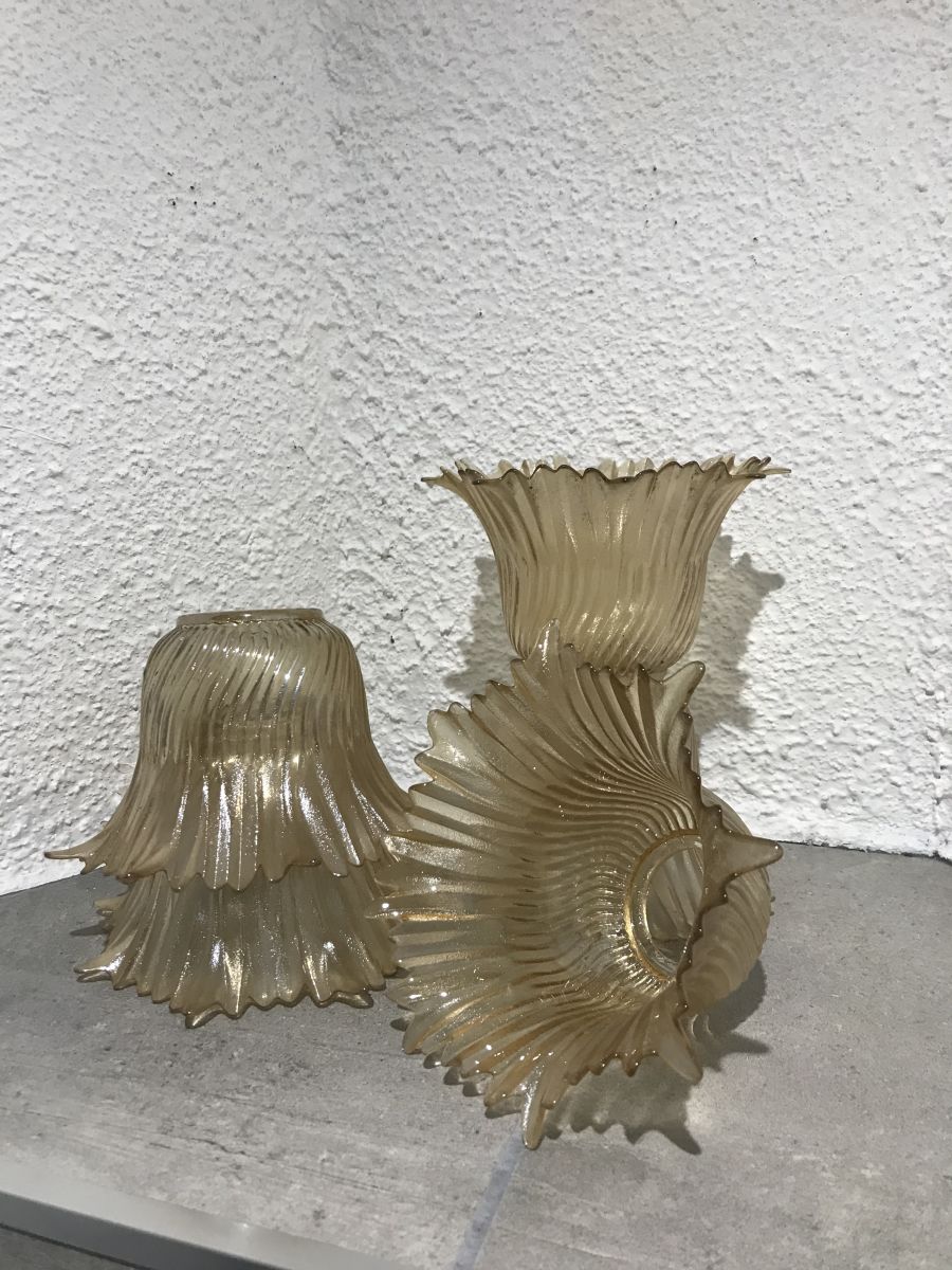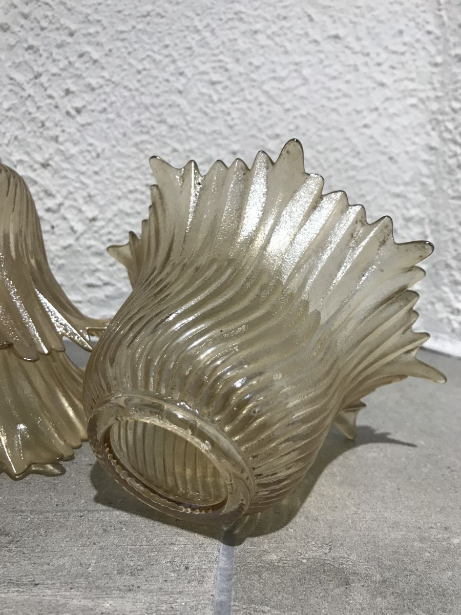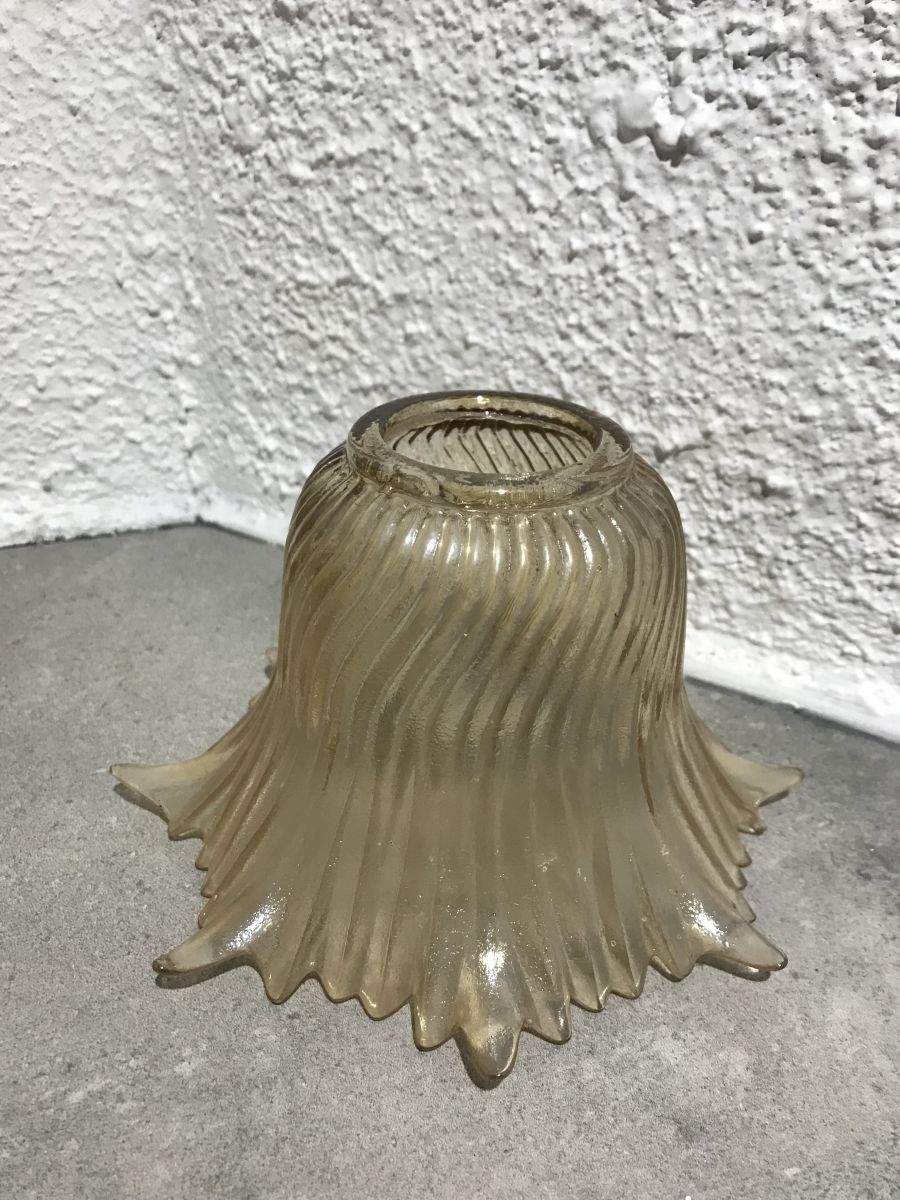 Lot de 5 globes tulipe ouvragés en verre. Hauteur d’un globe 10 cm ; diamètre de la base du globe 14 cm diamètre du haut 4 cm