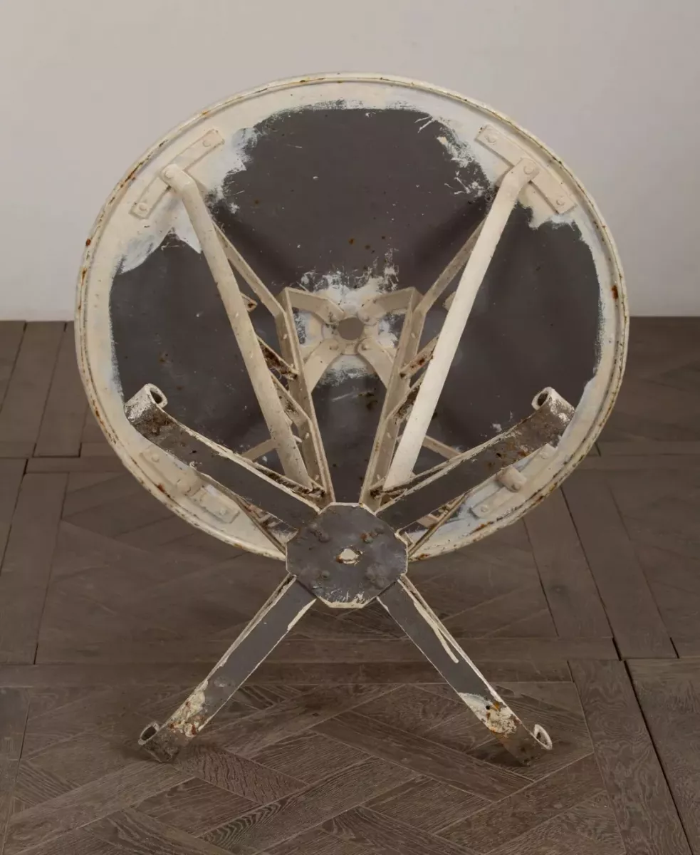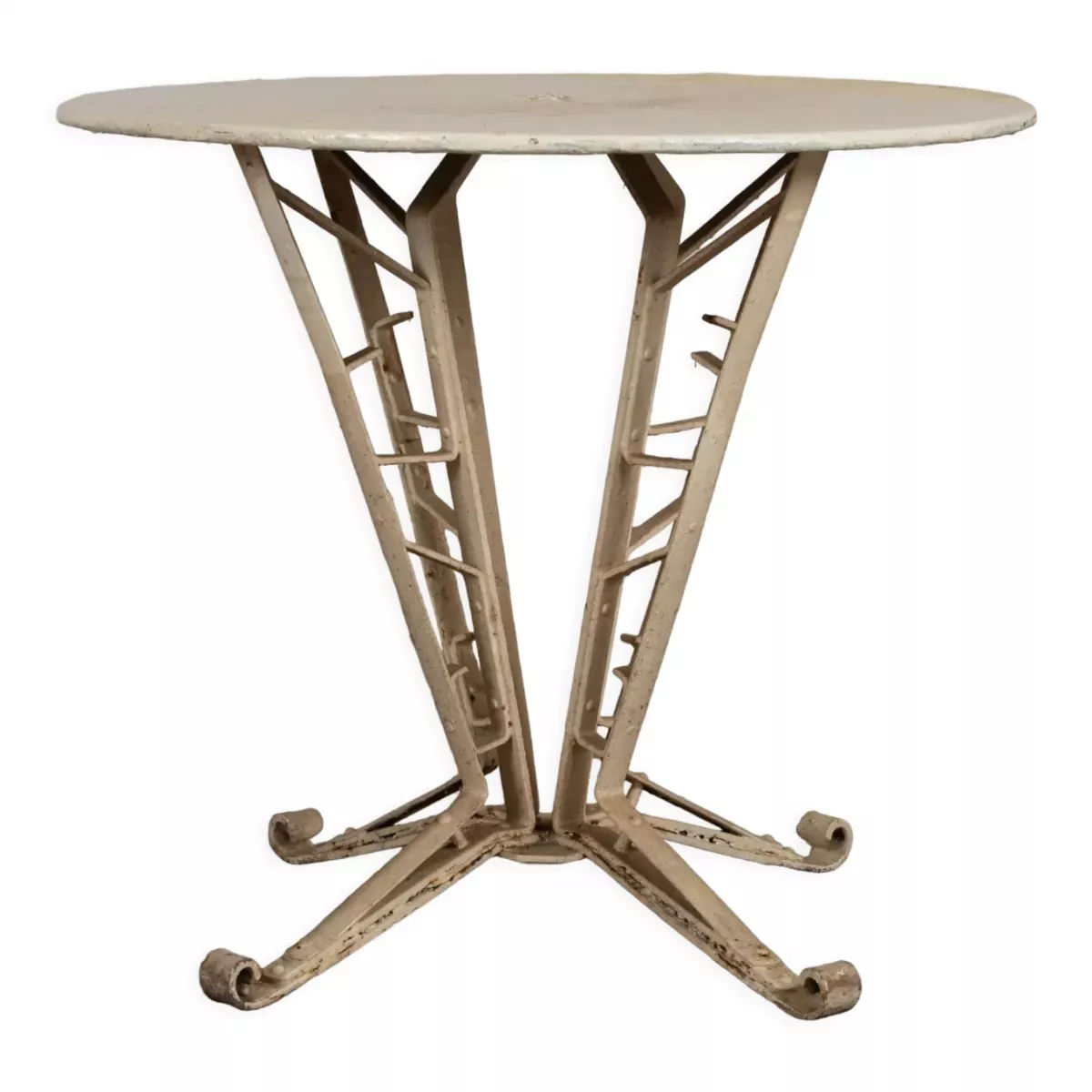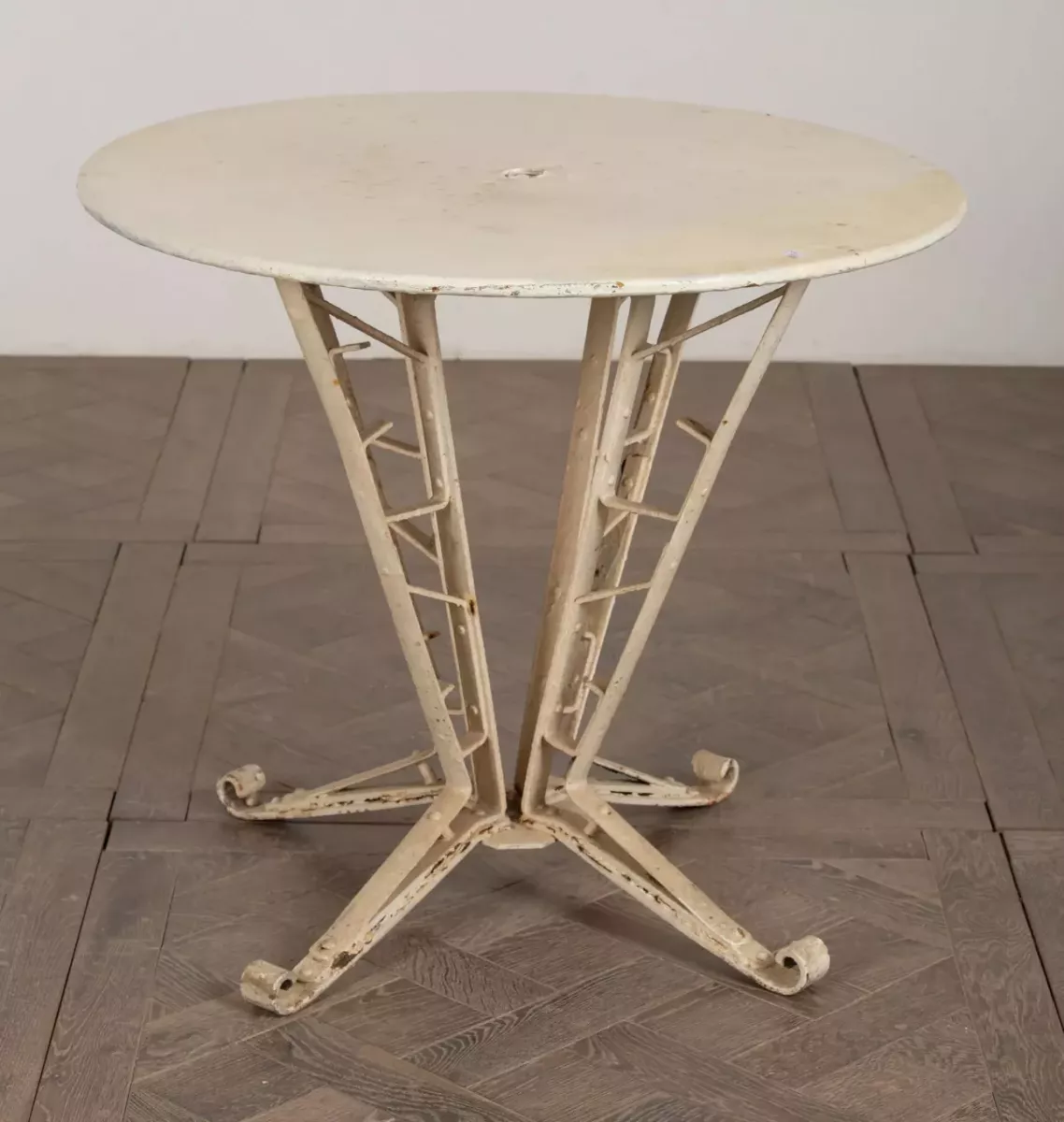 Table bistrot en fer laqué blanc. Années 1930-40. H_71, 5 cm d_81 cm