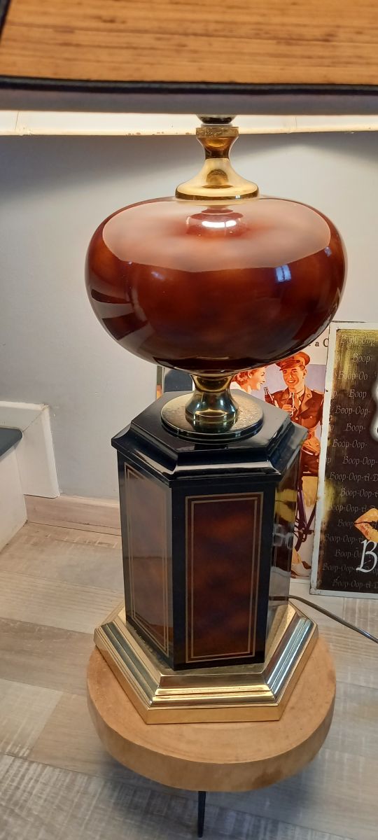 Lampe vintage maison Charles elle fait 95cm de hauteur un petit poc ai à signalé ansi que de l'oxydation sur le doré reste quand même une très jolie lampe mes envoye dont super soigné