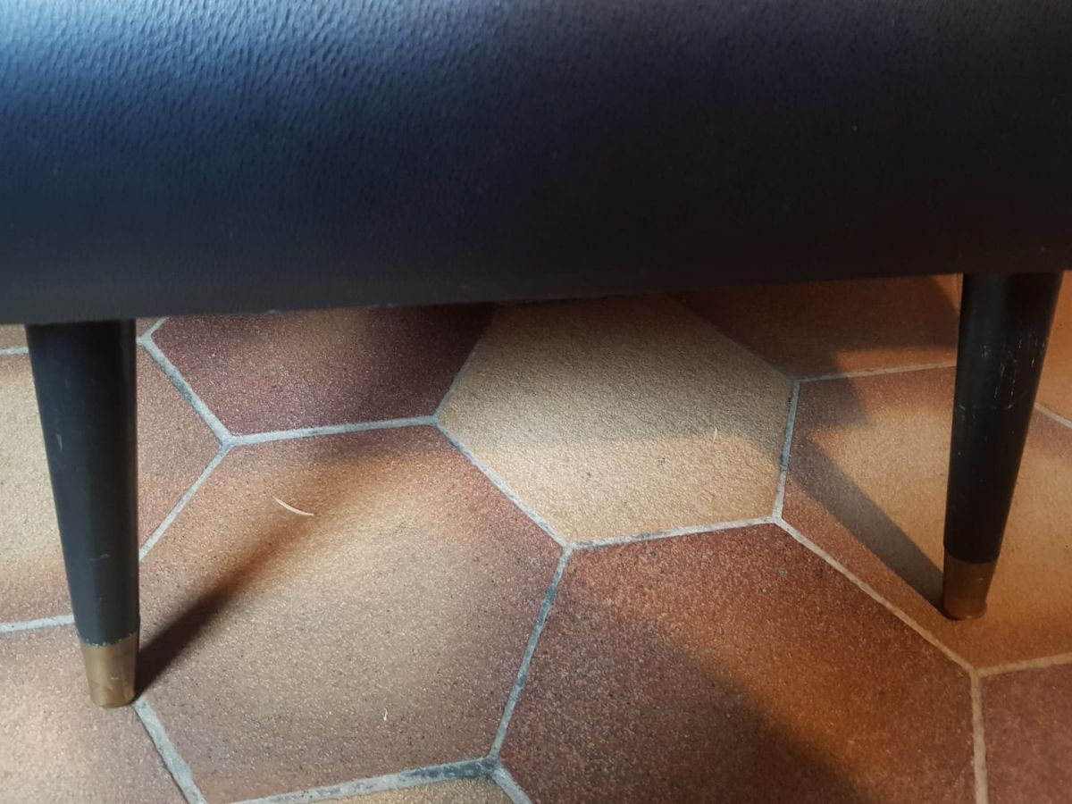 Piétement en bois peint . Les deux pieds avant possèdent des extrémités en laiton .