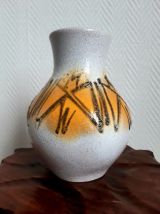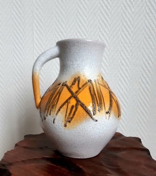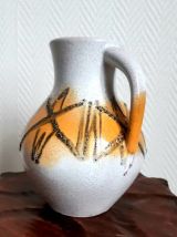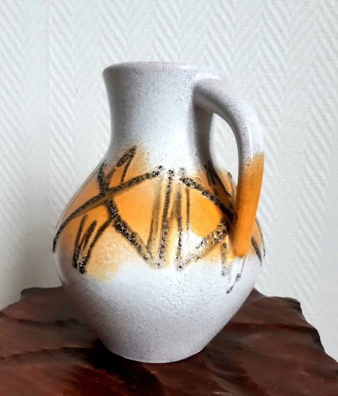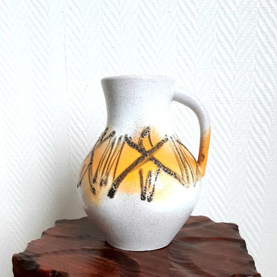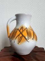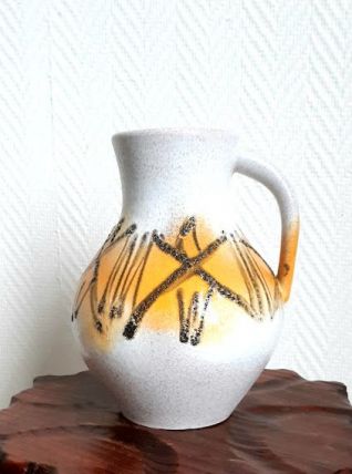 Petit pichet en céramique à décor abstrait jaune et noir.