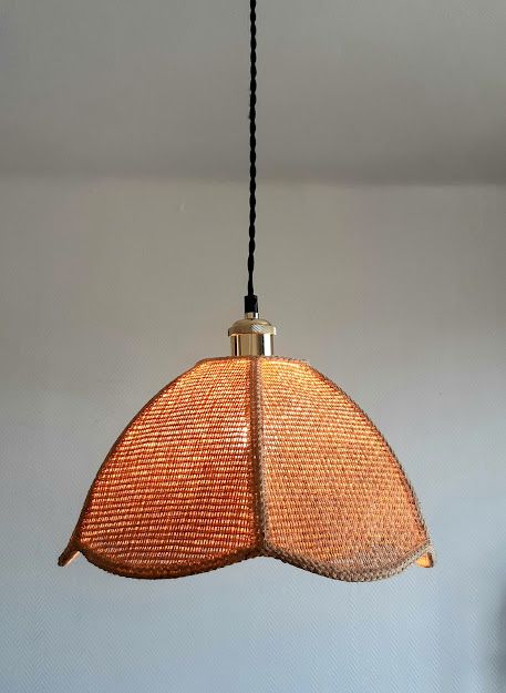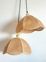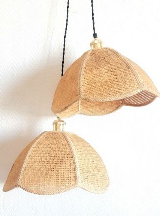 Suspensions en paille tressée de forme corolle, typique des années 1970.