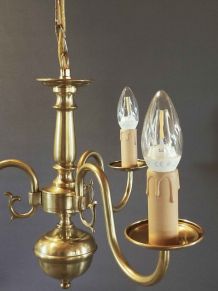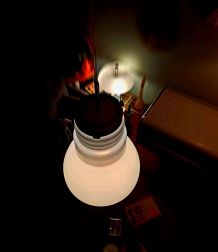 Montée à l'électricité avec des douilles E27 dorées neuves, un tissu en fil torsadé noir également neuf, pavillons en plastique blanc.