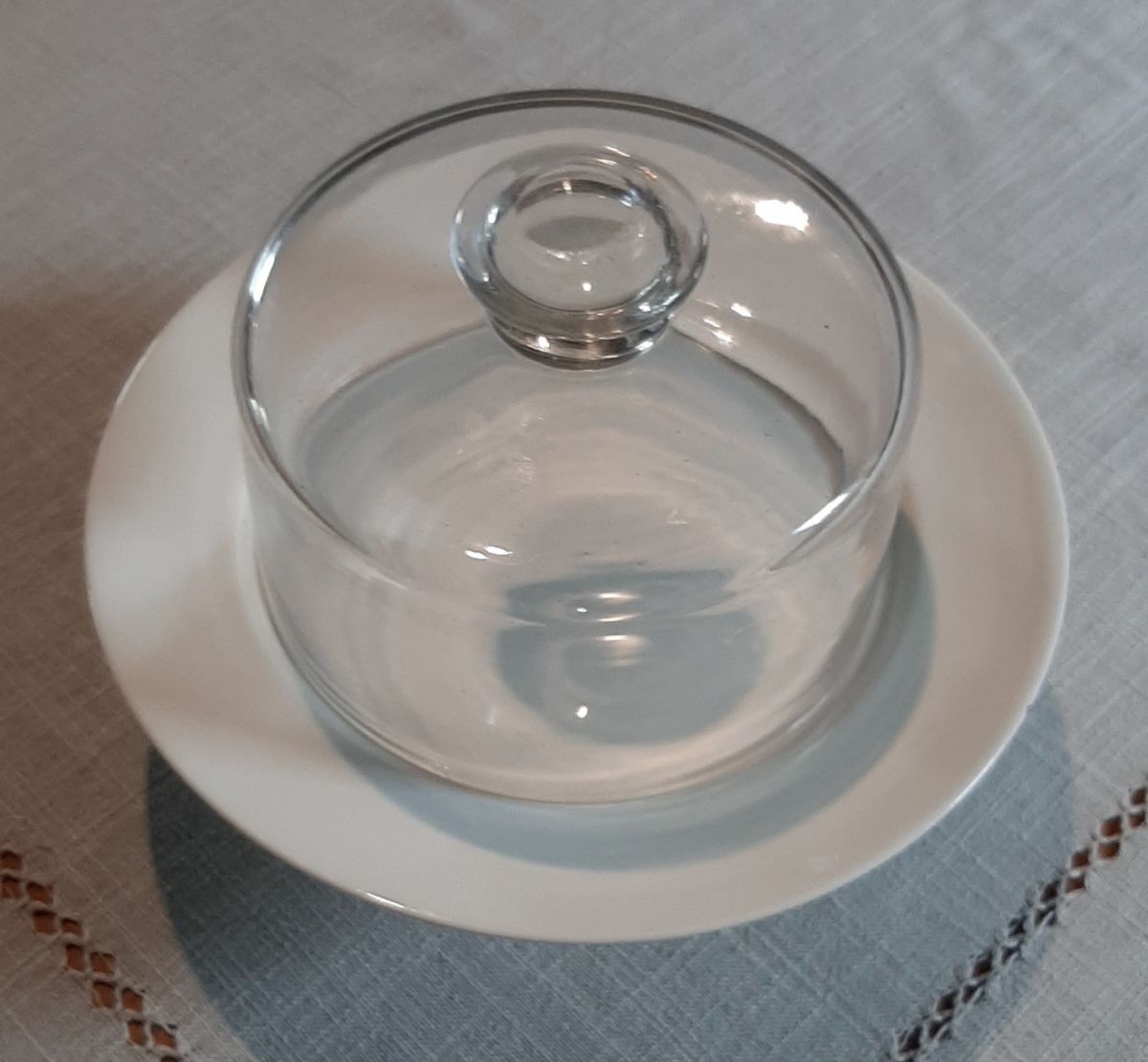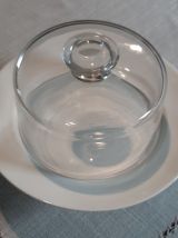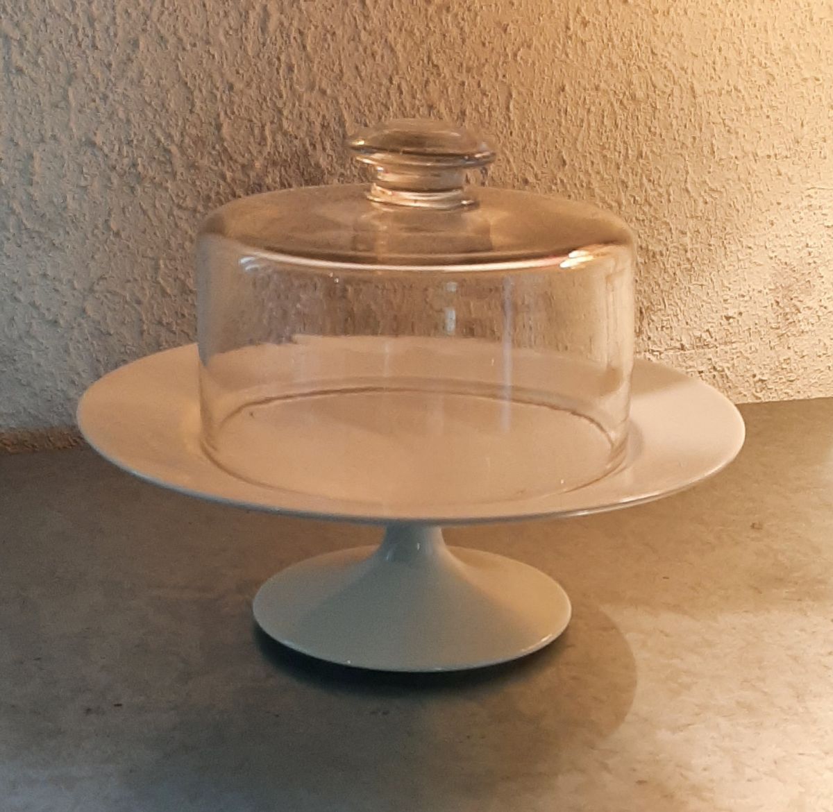 Ancienne (1950 environ) cloche à camembert, présentoir à mignardises ou autres. Également très décoratif même vide.