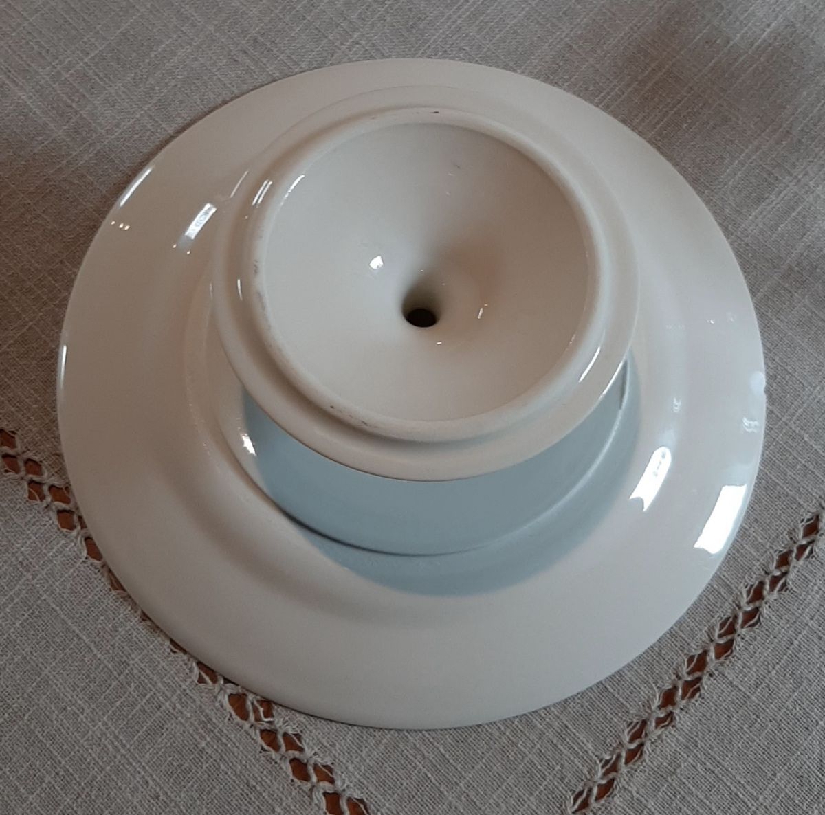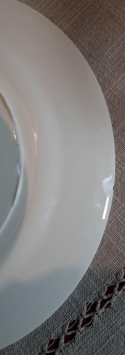 Il présente une petite tâche (point noir lors de la cuisson, qui le rend unique) et une petite ébréchure qui ne se voit que par dessous.