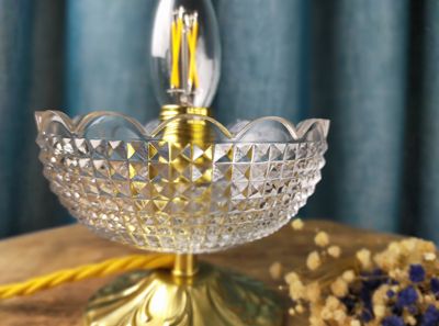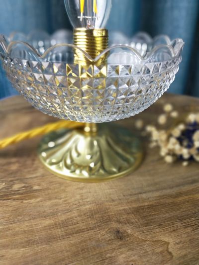 Cette coupe à l’origine est un cul de lampe en cristal de Bohême provenant d’une ancienne suspension et c’est pour ça qu’elle brille de mille feux. Tout en finesse et en élégance, cette lampe donnera une touche unique à votre décoration.