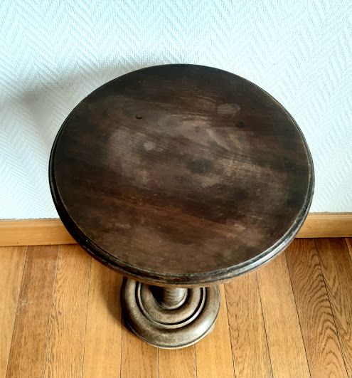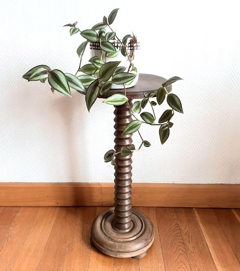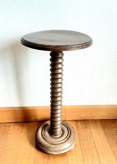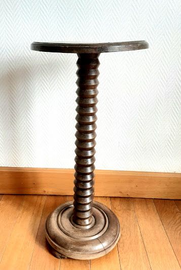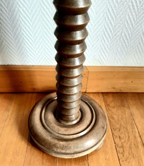 Pied en bois tourné avec un plateau lisse.