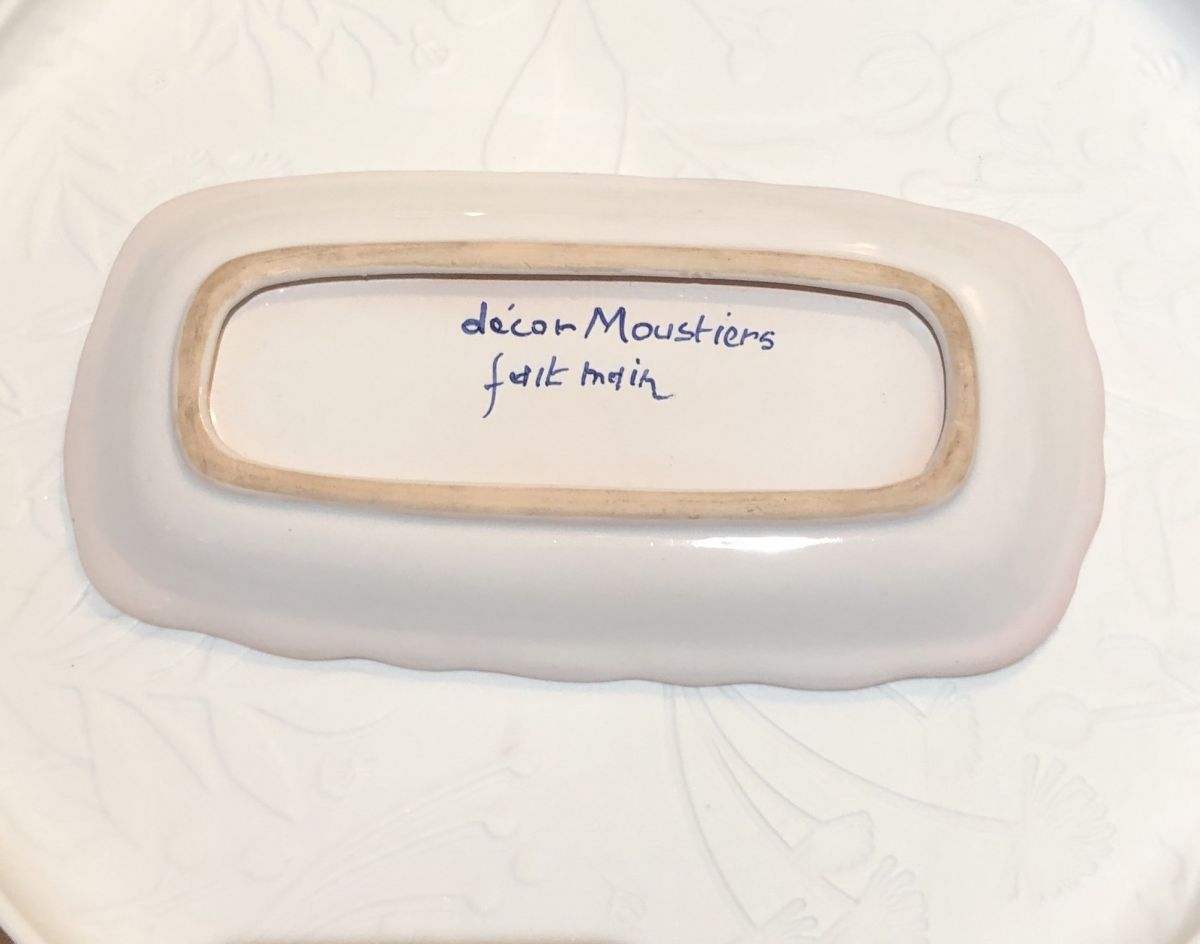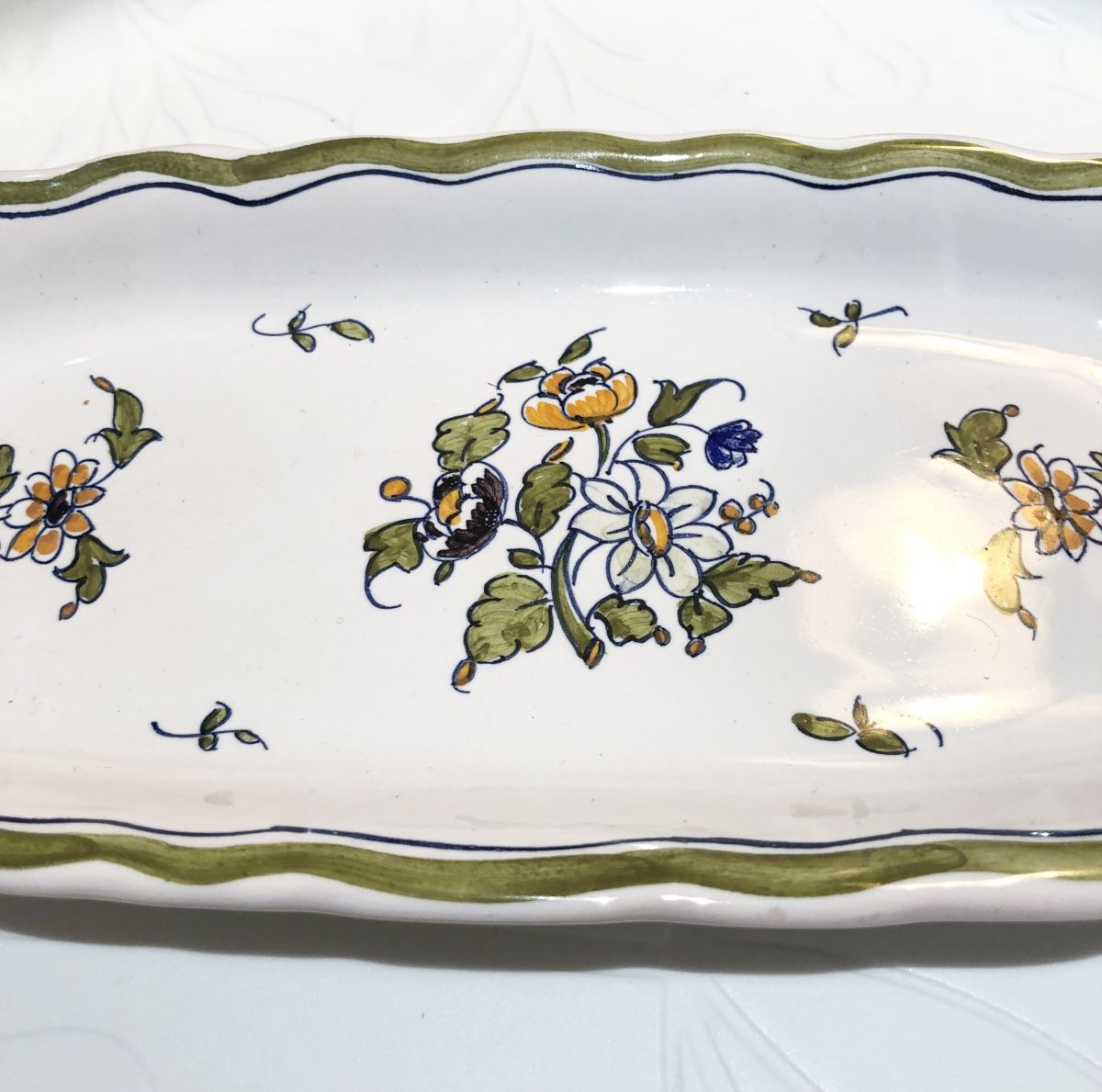 Petit plat vide poche de la faïencerie Moustiers fleurs jaunes contour vert. 20/10 cm et 2,5 cm de haut.