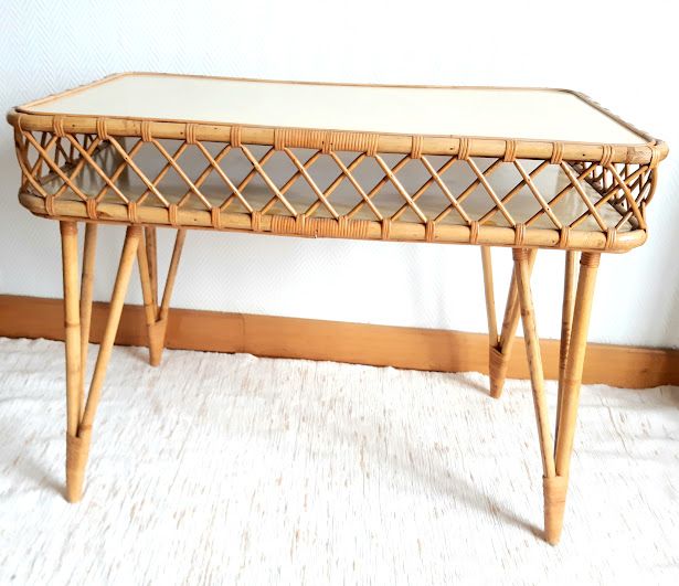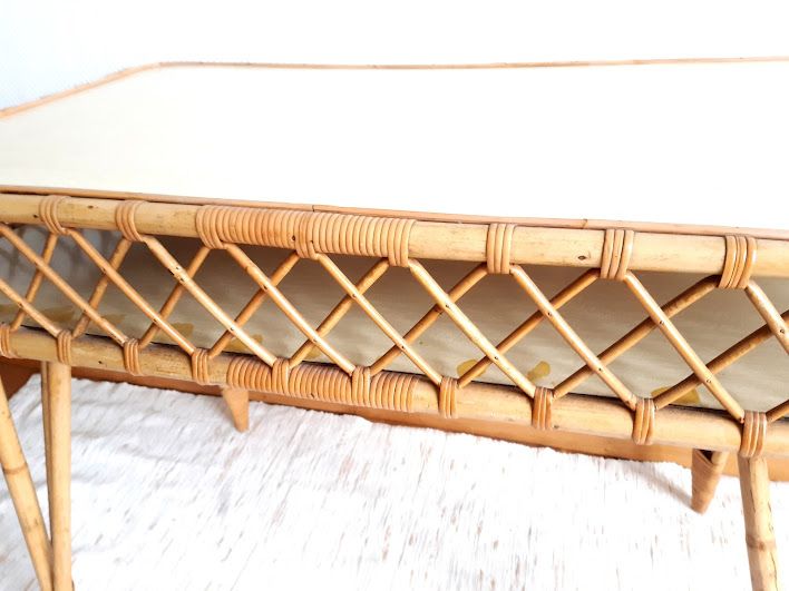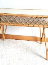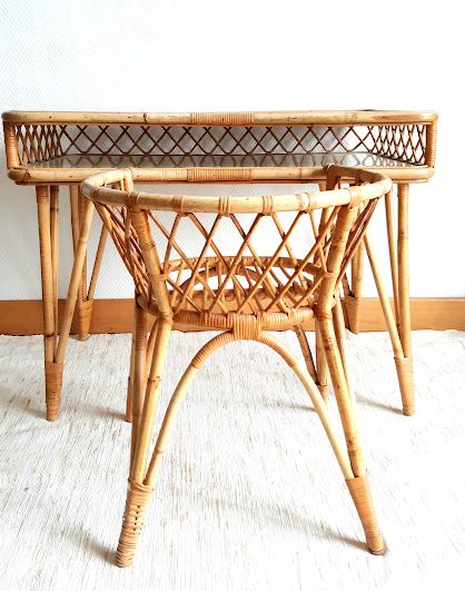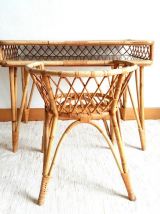 Bureau et chaise en rotin, travail vintage vers 1960.