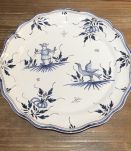 Assiette Moustiers decor grotesque bleu 24/2cm.