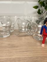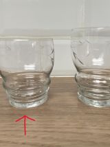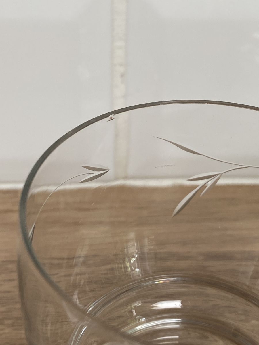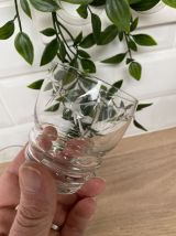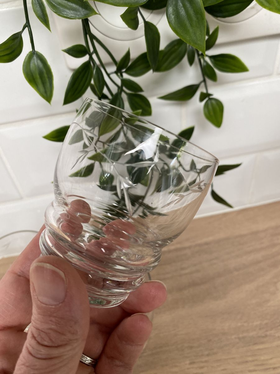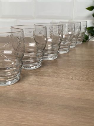 Set de 6 verres à vin en verre gravé. Joli décor discret. Un léger défaut sur l'un des verres. Contenance 12 cl. Diamètre du buvant 6,4 cm, hauteur 7,4 cm. Je possède également 6 verres à eau du même modèle (un peu plus grand), n'hésitez pas à me contacter pour un envoi groupé. P19