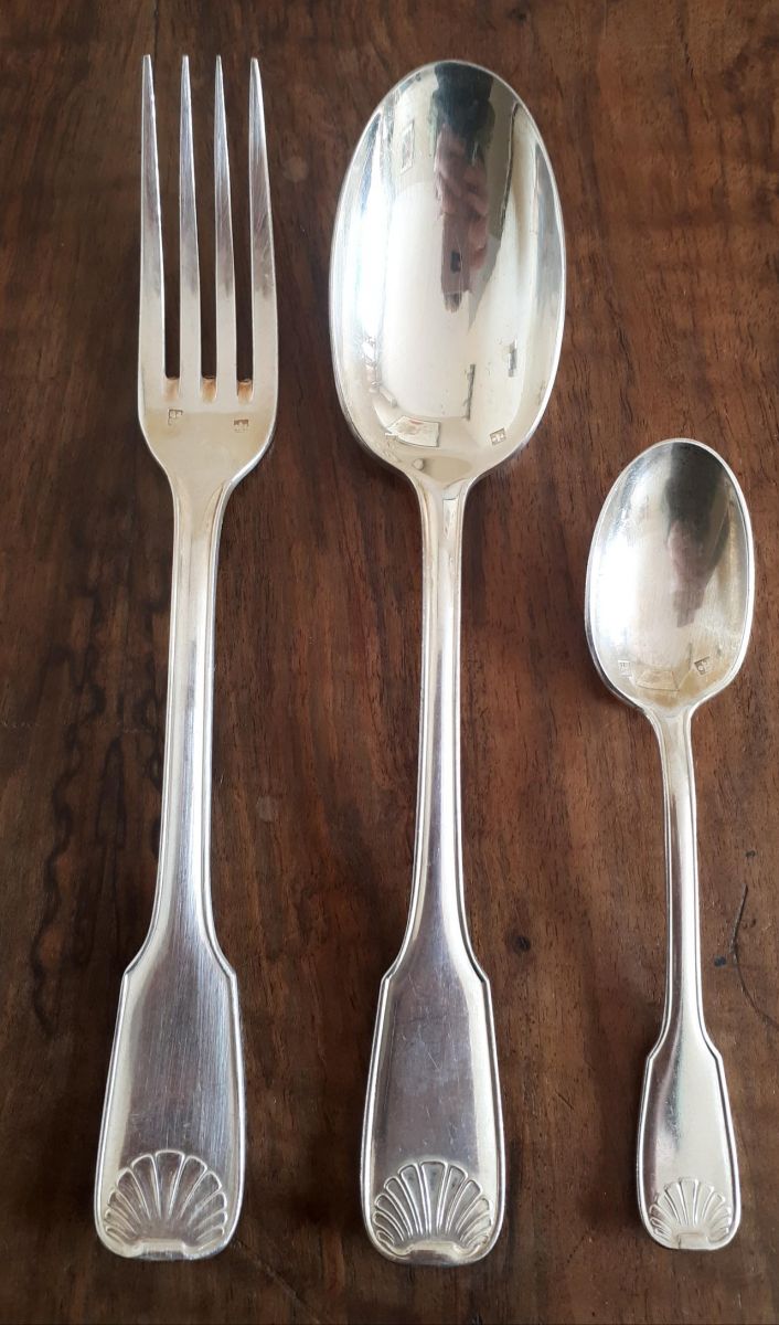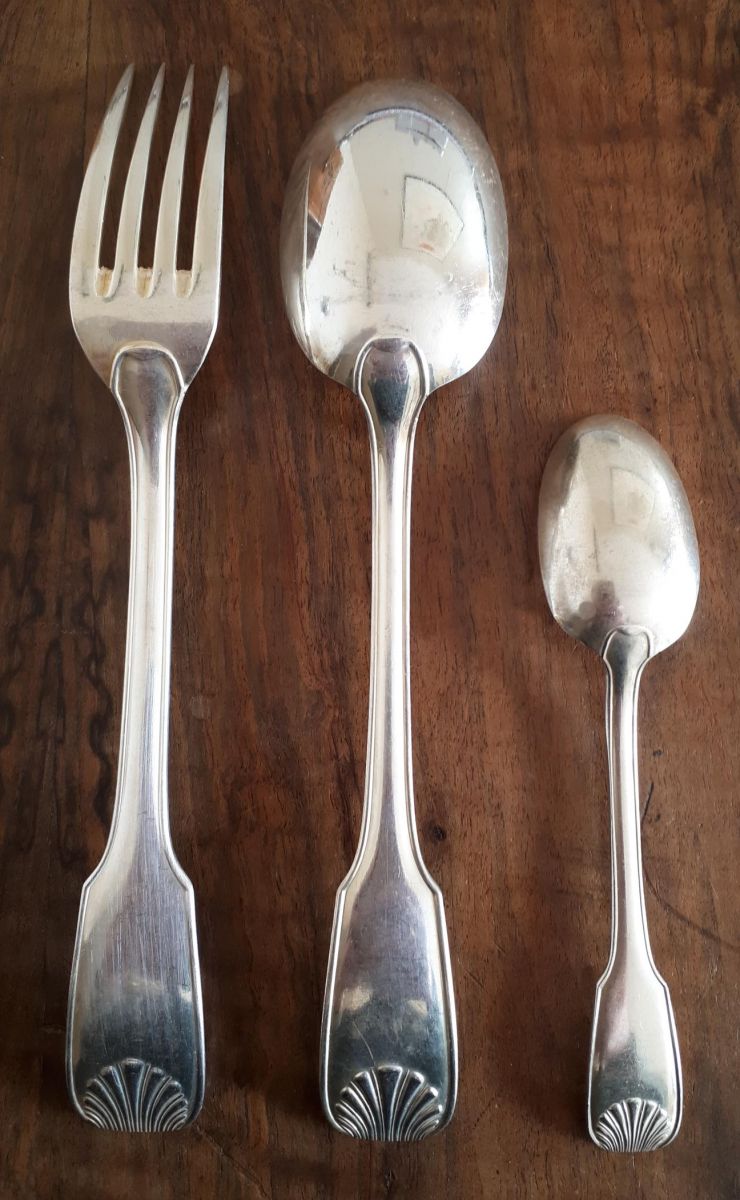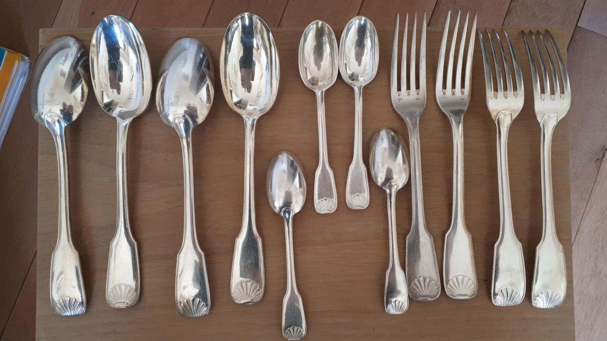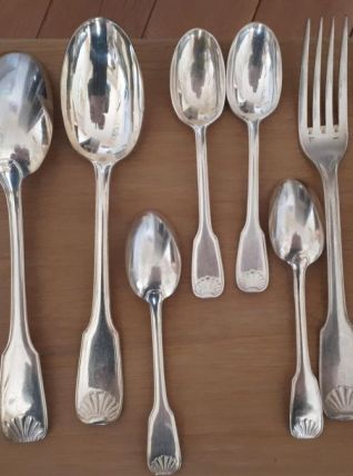 Ensemble de couverts (12 pièces) modèle Coquille en métal argenté comprenant :