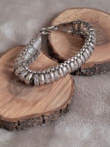 Bracelet signé Claude Montana vintage année 80/90 en métal doré et plexi bleu égérie trace d'usures reste en excelente état.