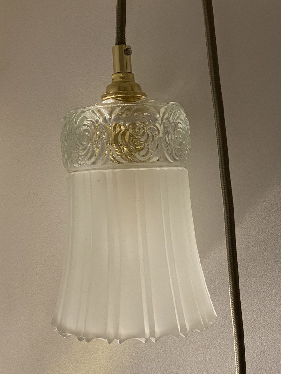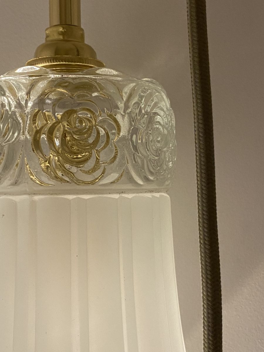 Le verre plissé un peu givré se marie parfaitement avec les fleurs en relief, comme l’annonce du Printemps à venir.