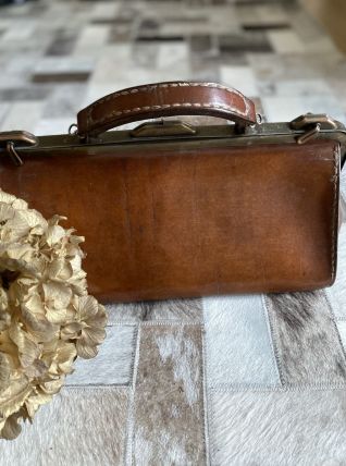 Très belle mallette en cuir, avec poignée courte et 3 fermoirs.
