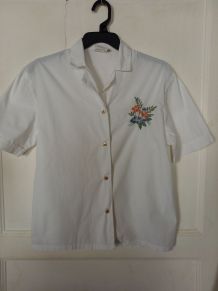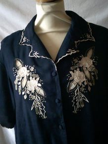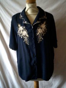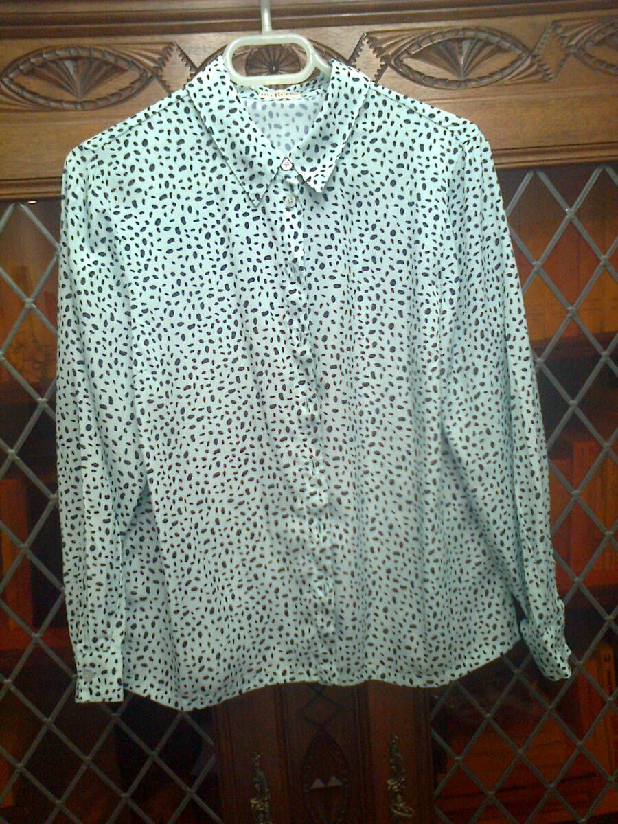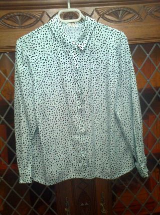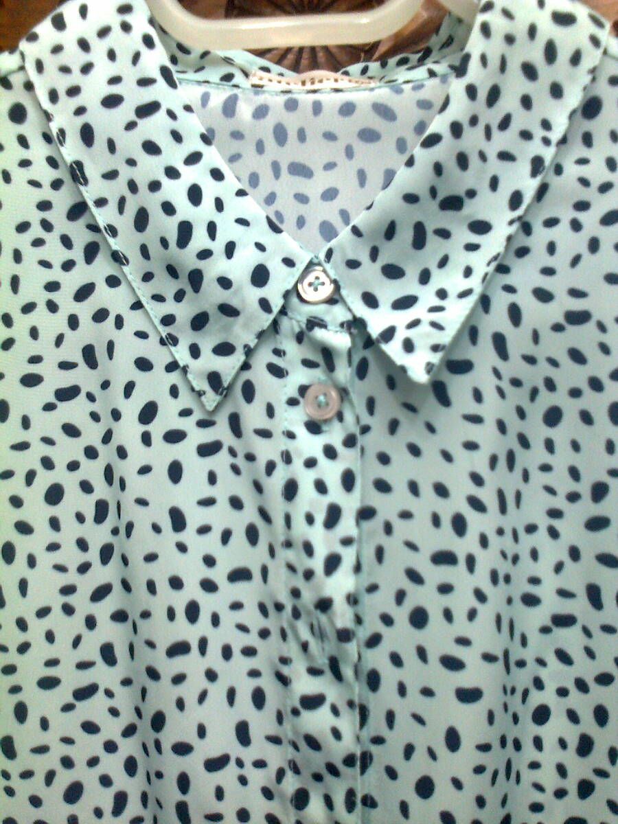 chemisier femme polyester vert-eau, à pois bleu marine / noir,