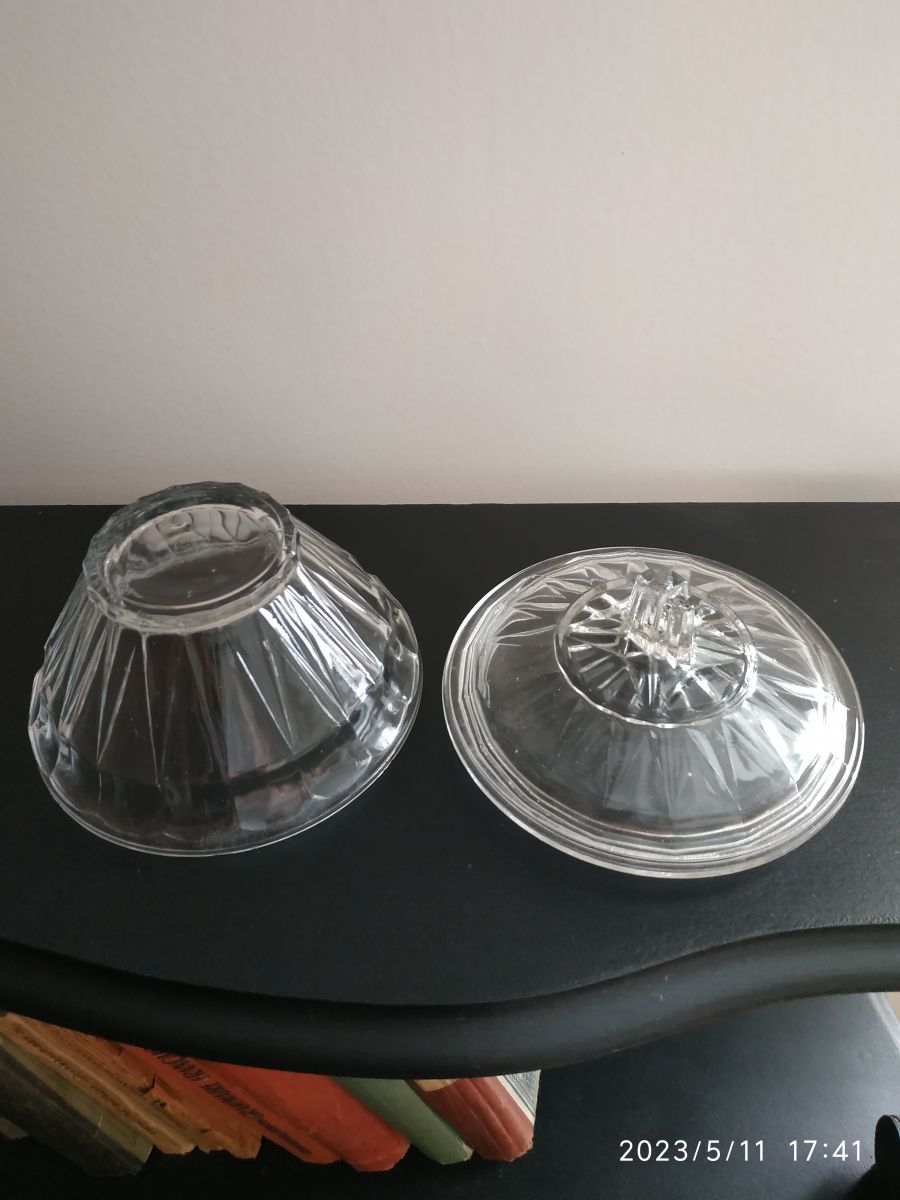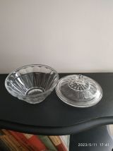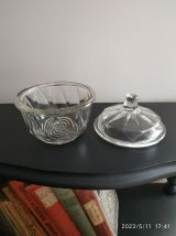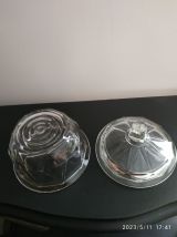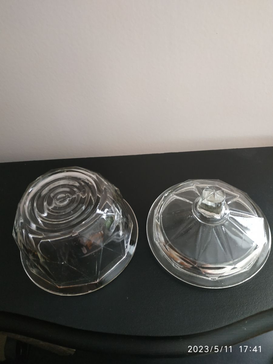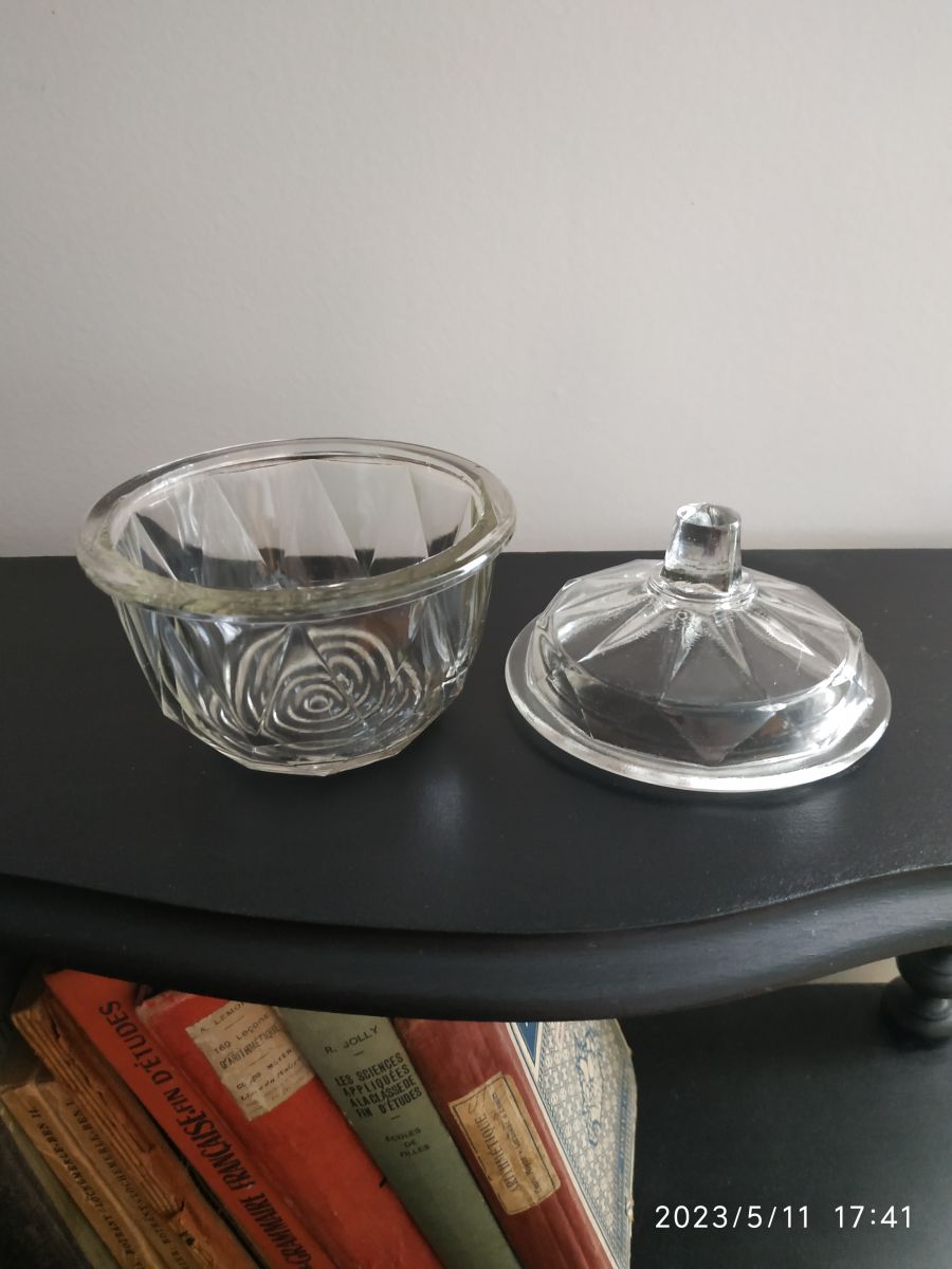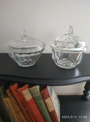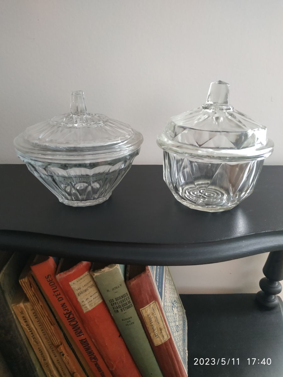Ensemble de 2 sucriers ou bonbonnières en verre épais, chacun avec son couvercle.
