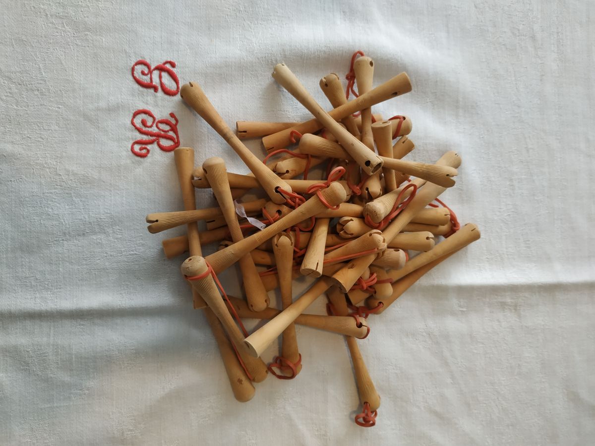 Lot de 20 bigoudis anciens en bois. RARISSIME !
