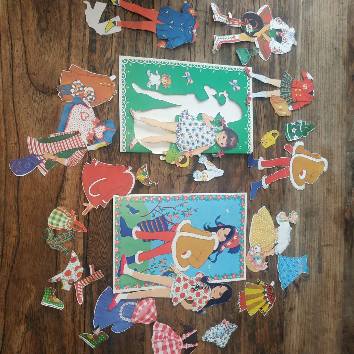 Deux cartes à découper (découpage bien avancé!), mannequin papier avec nombreuses tenues et accessoires.