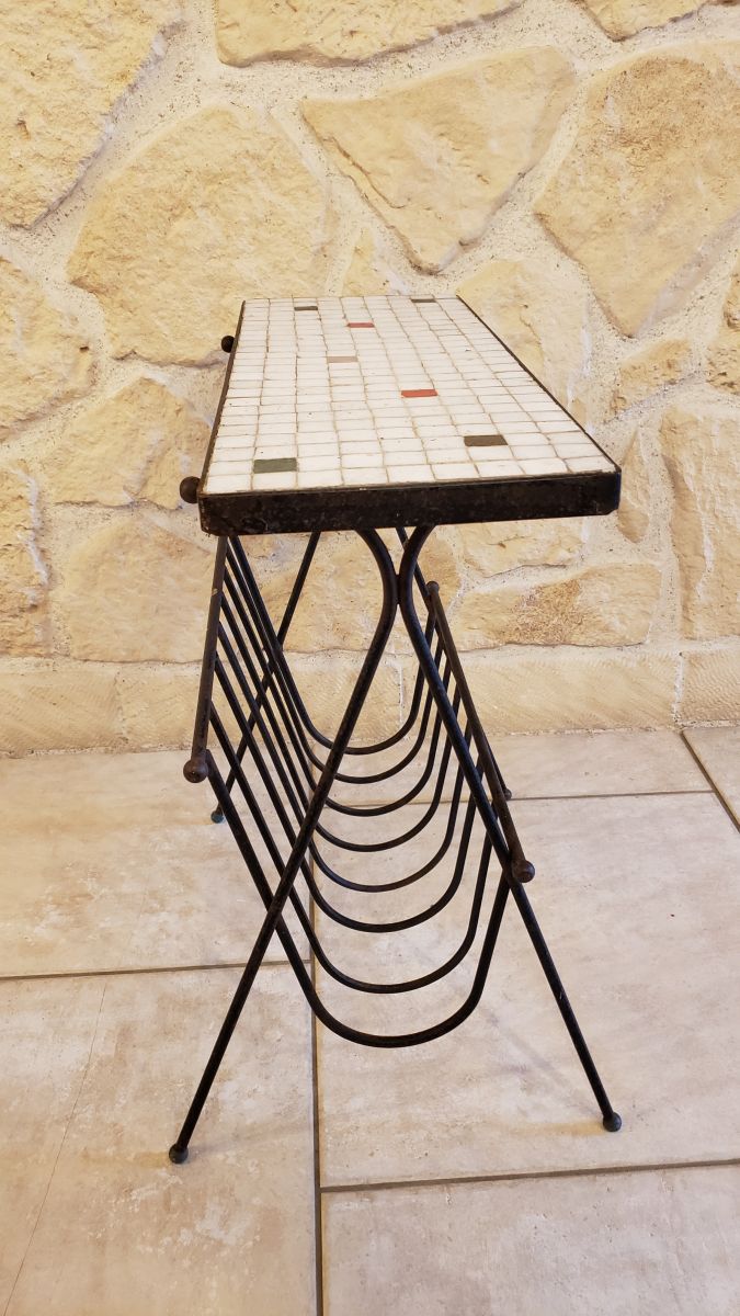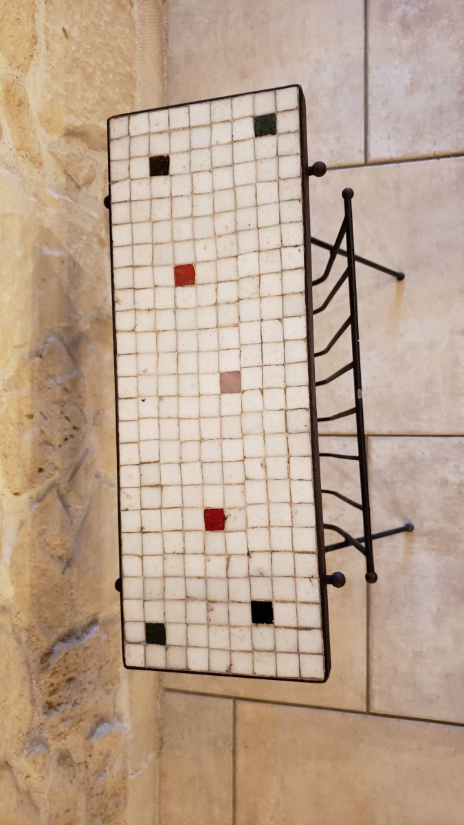 Plateau carrelé mosaïque 19x53 cm et les dimensions qui indiquent: Hauteur 53 cm Longueur 43 cm Profondeur 33.