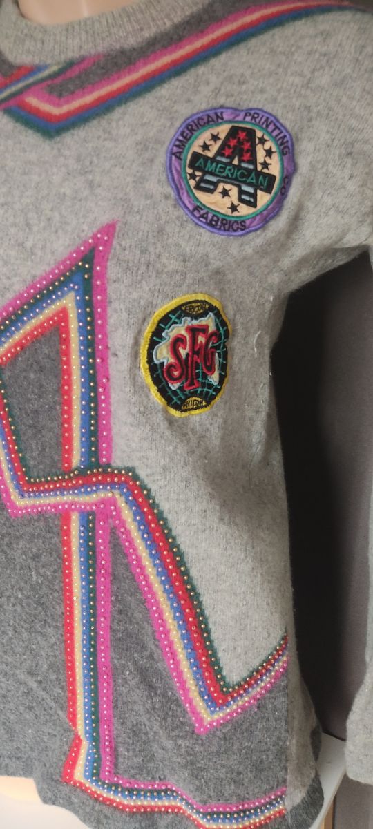 ✔️ Très beau pull vintage 80 avec écussons et perles colorées