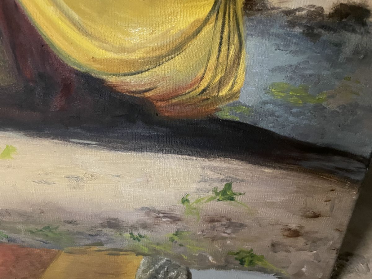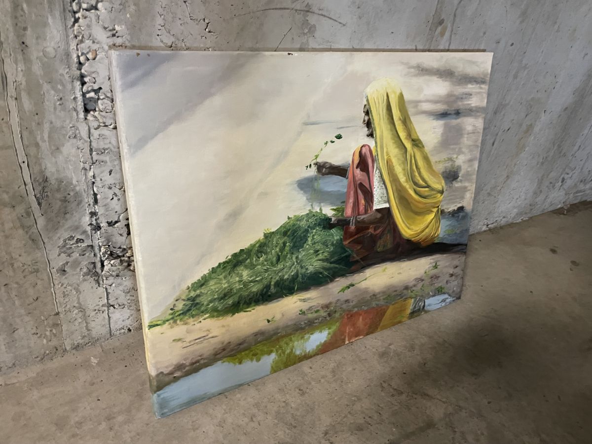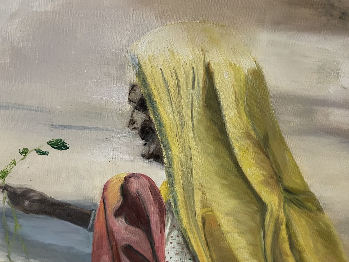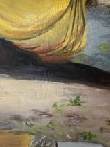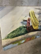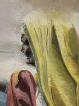 Huile sur toile représentant un portrait de femme touareg, non signé, non daté, école moderne, dimensions (cm) : L.65xH.50xP.2, bon état.