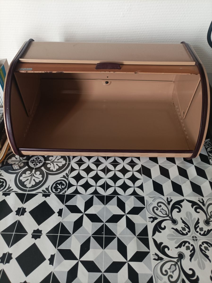 Boîte huche à pain tôle émaillée Rossignol vintage